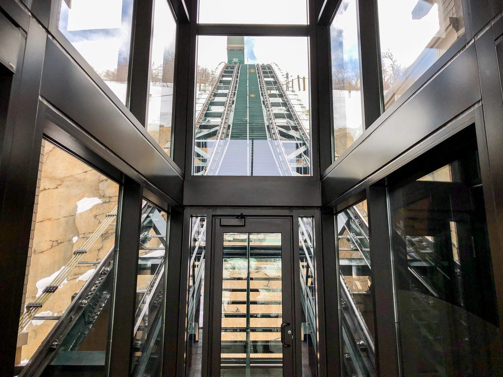 You could get to the base of the Deer Valley ski resort either by taking the funicular down to the bottom level and walking a couple hundred yards or taking the hotel's free shuttle from the lobby. The shuttle would drop you off at the base of the ski resort after a five-to-10-minute drive down the mountain. We did both, but if you have gear and kids, I recommend the shuttle.