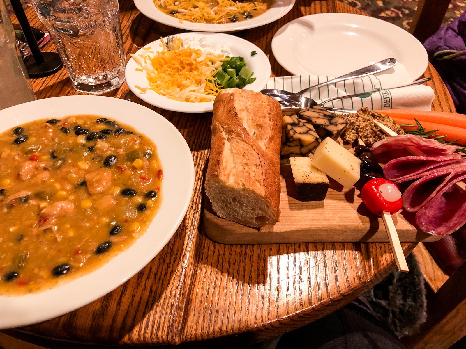 The lodge was geared more toward apres-ski snacks and drinks, but we made it work for a dinner for around $50, instead of over $100 like the evening before.