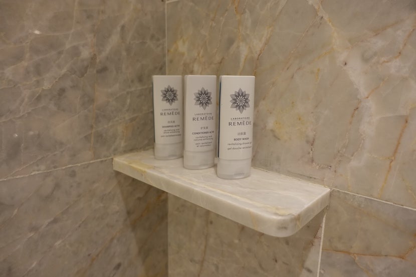 As is the brand standard, the soaps and other bath products were made by Laboratoire Remède.