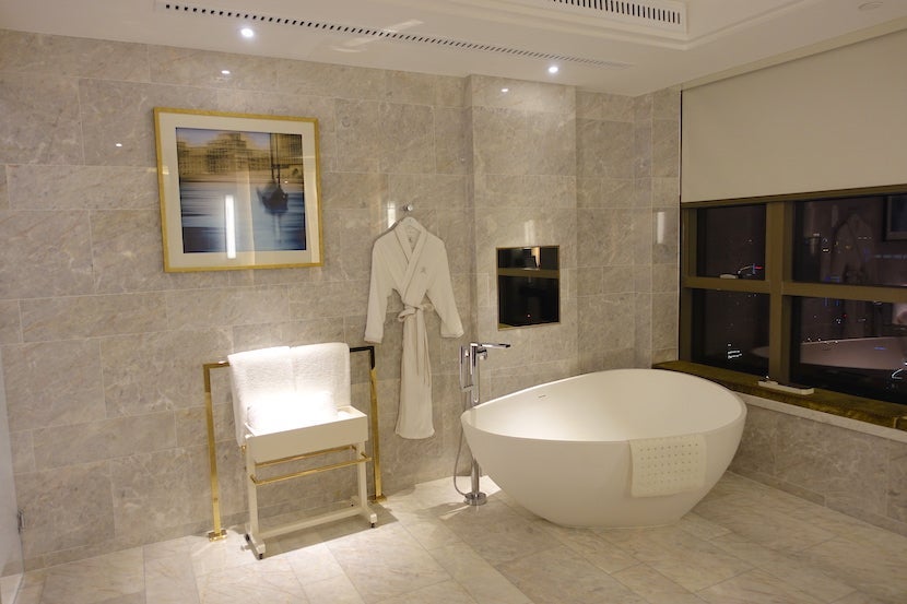Overall, I thought the room was beautiful and very large. Most of the finishes were gorgeous, and that all-marble bathroom was a showstopper.