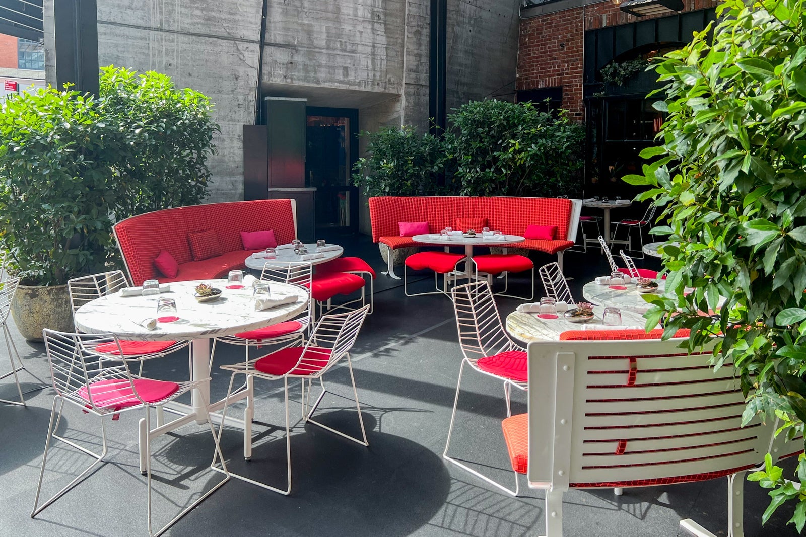 Across the street from the hotel's entrance sits the Diane von Furstenberg store with its iconic pink stairs; there are also storefronts for tech staples like Samsung and Tesla are neighborhood fixtures. A slew of dining hot spots — including Catch and RH Rooftop Restaurant on Ninth Avenue and Fig & Olive on West 13th Street — are all within a block of the property.