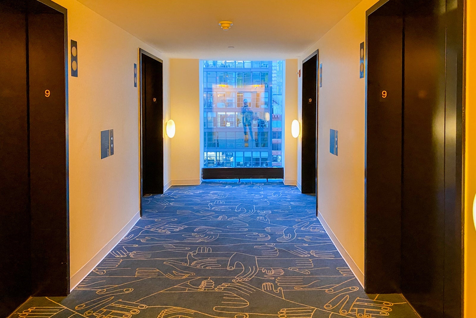 Outside the rooms, you'll notice wide hallways and multiple elevators large enough to accommodate a wheelchair. However, the moody lighting throughout the property could pose a challenge for those with vision issues.