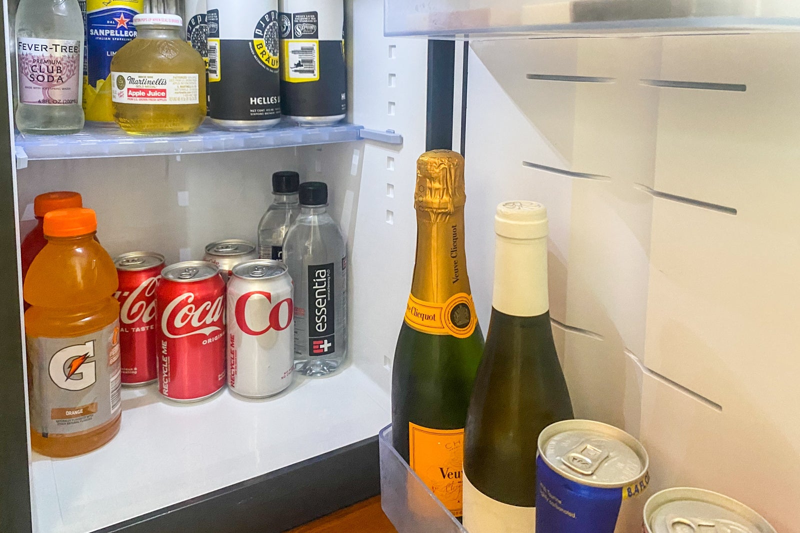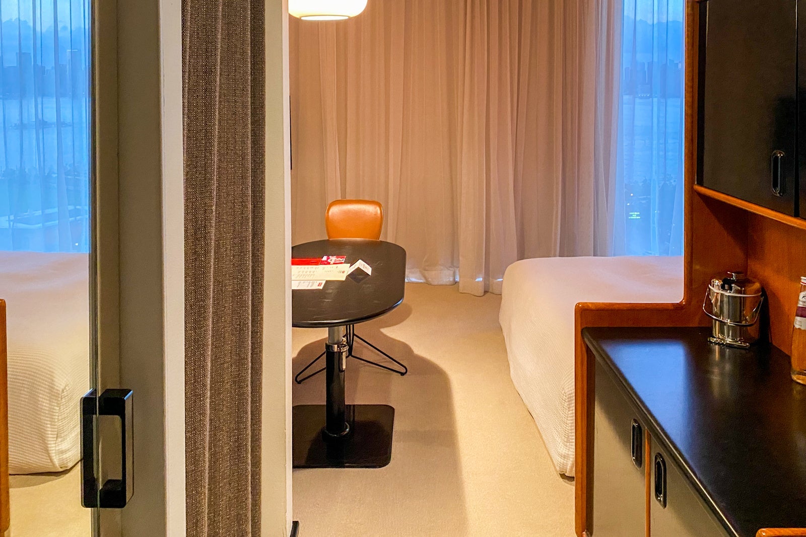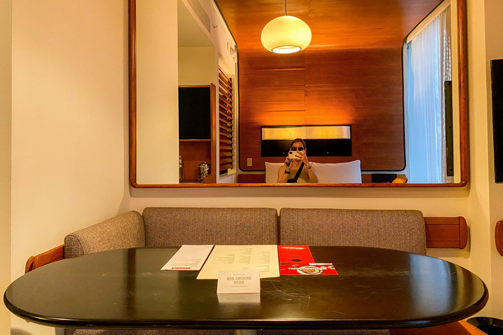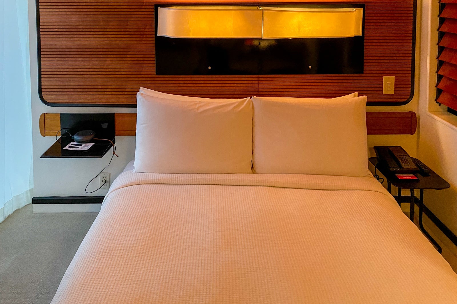 Though slightly smaller than the average New York City hotel room at 230 square feet, my deluxe queen room had a thoughtful layout that could comfortably fit a queen bed with room to walk around. It also fit a full-size table and couch large enough to accommodate four people for meals or work. There was a closet with a robe and slippers, a flat-screen TV and a minibar.