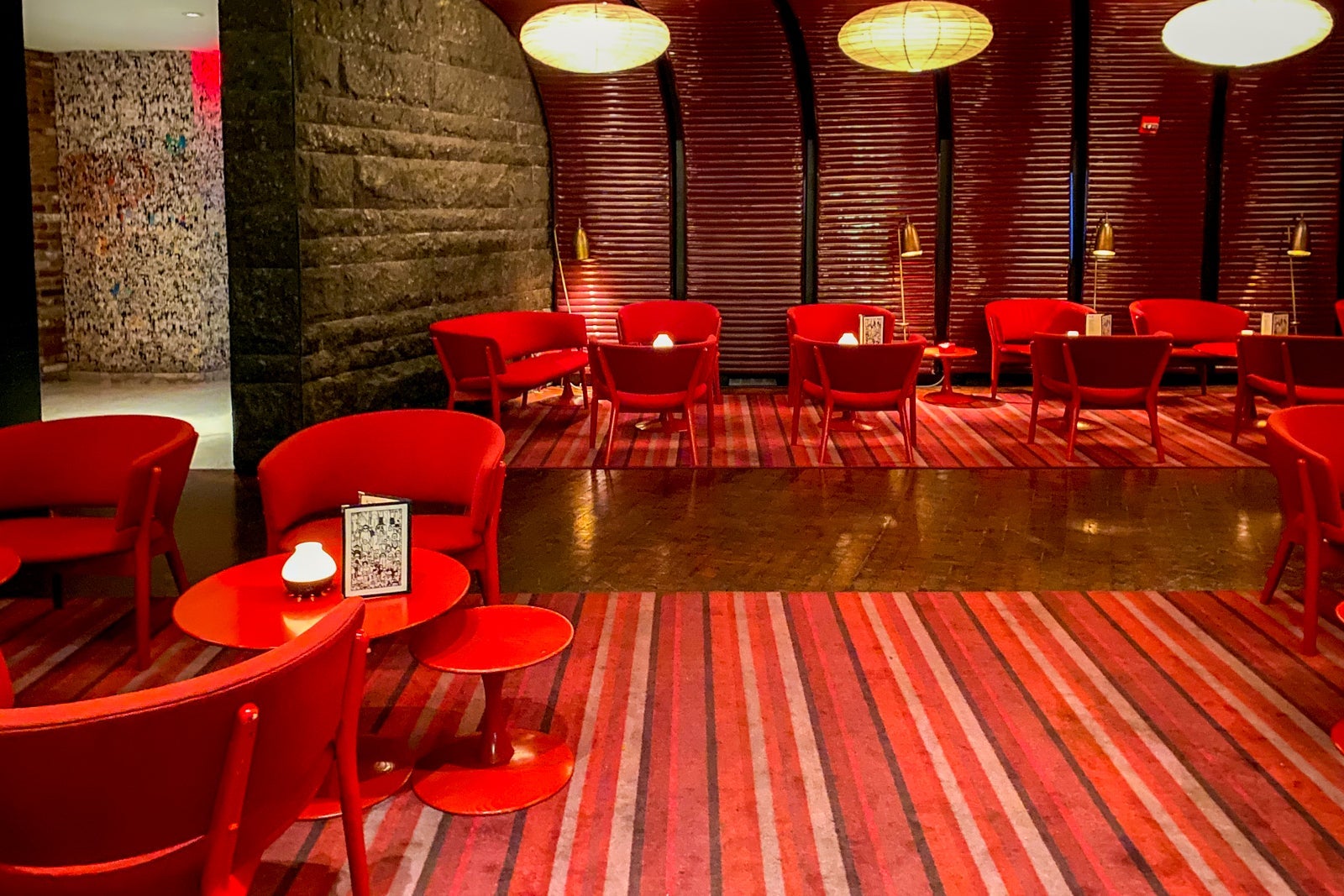 The lobby is designed to be more of a social space with oversized black lounge couches to match the party vibe. The lobby's design elements, such as funky red lighting and art throughout, hammer home the property's cool aesthetic.