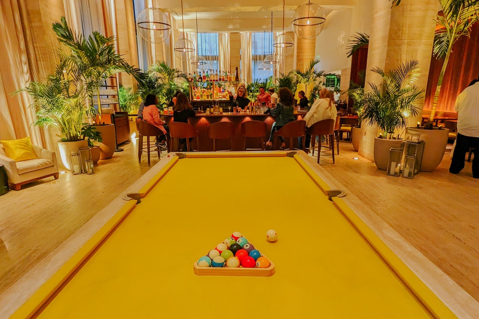Purple bougainvillea flowers cascade over the lobby doors at street level and hang above the pool decks, cabanas and bar area. On closer inspection, it's clear that all of the bougainvillea plants at the Edition are artificial, mixed in with the hundreds of real palms, ivy, trees and ferns.