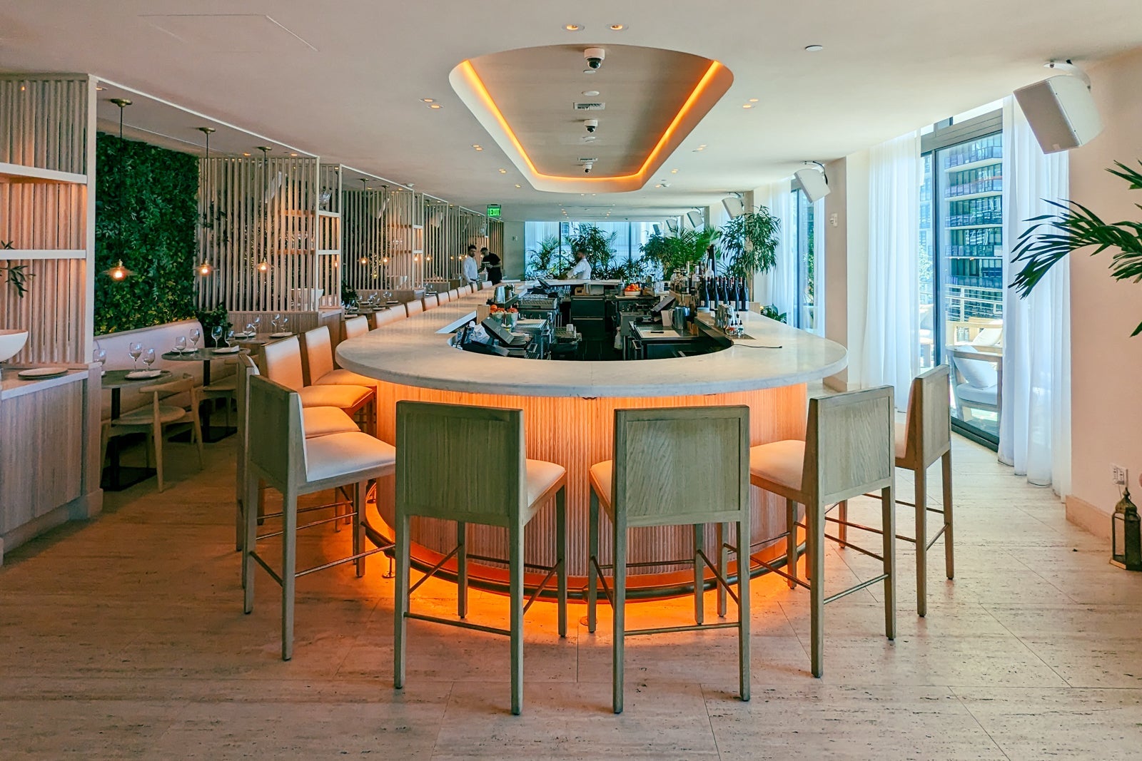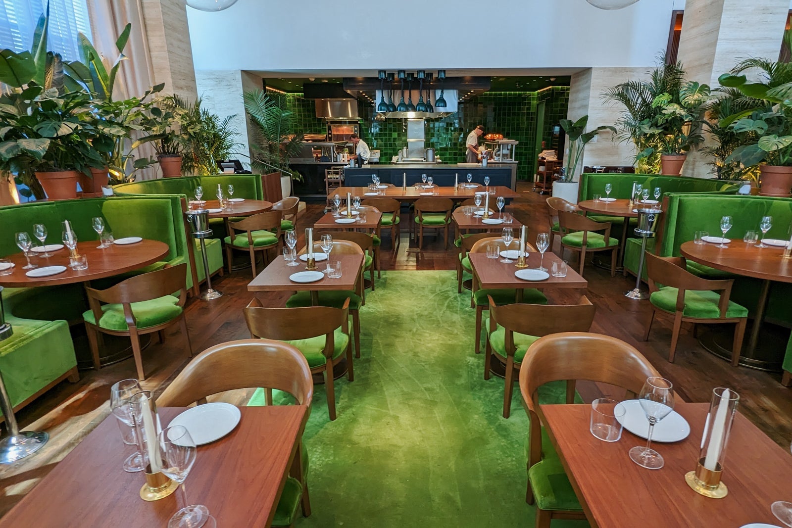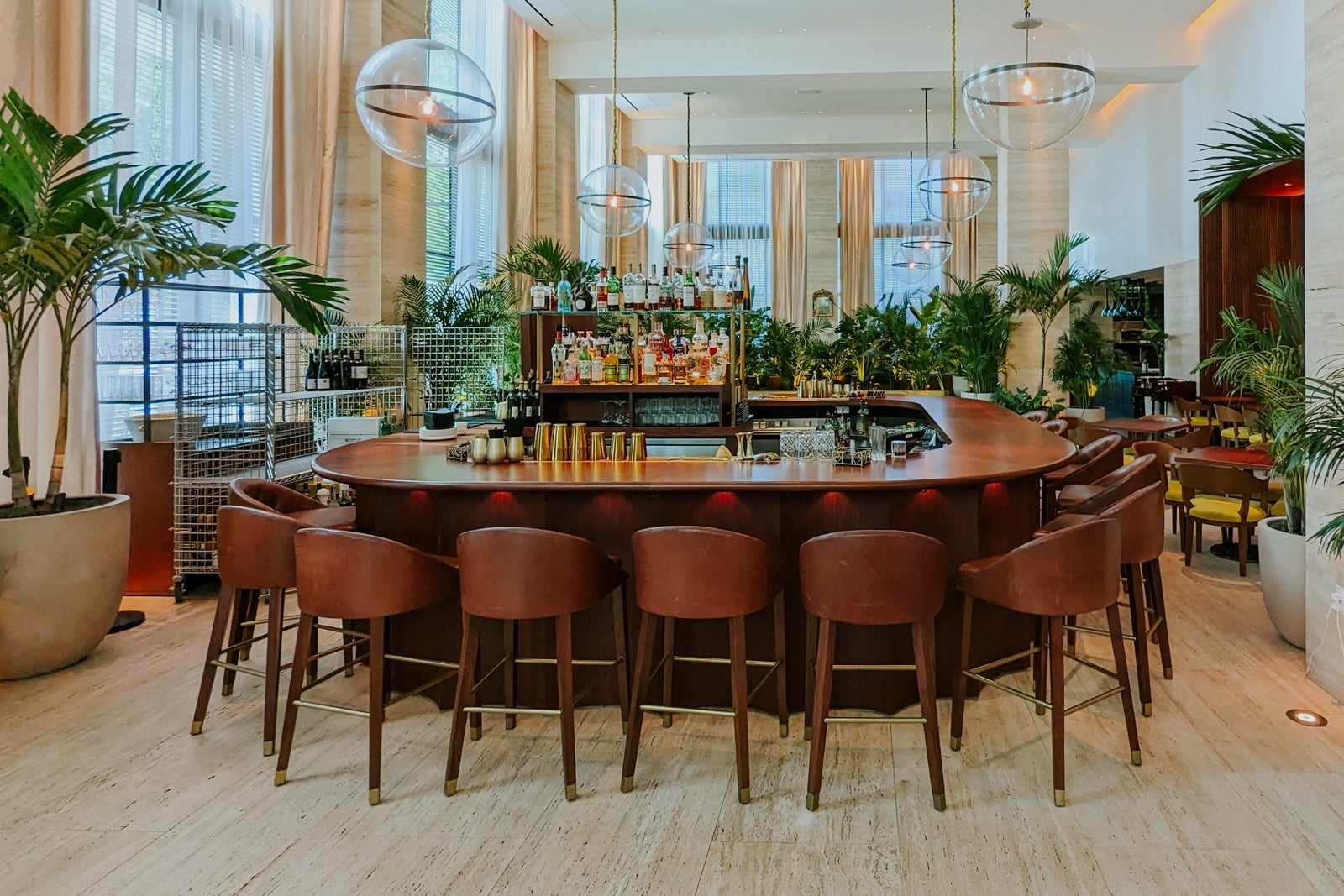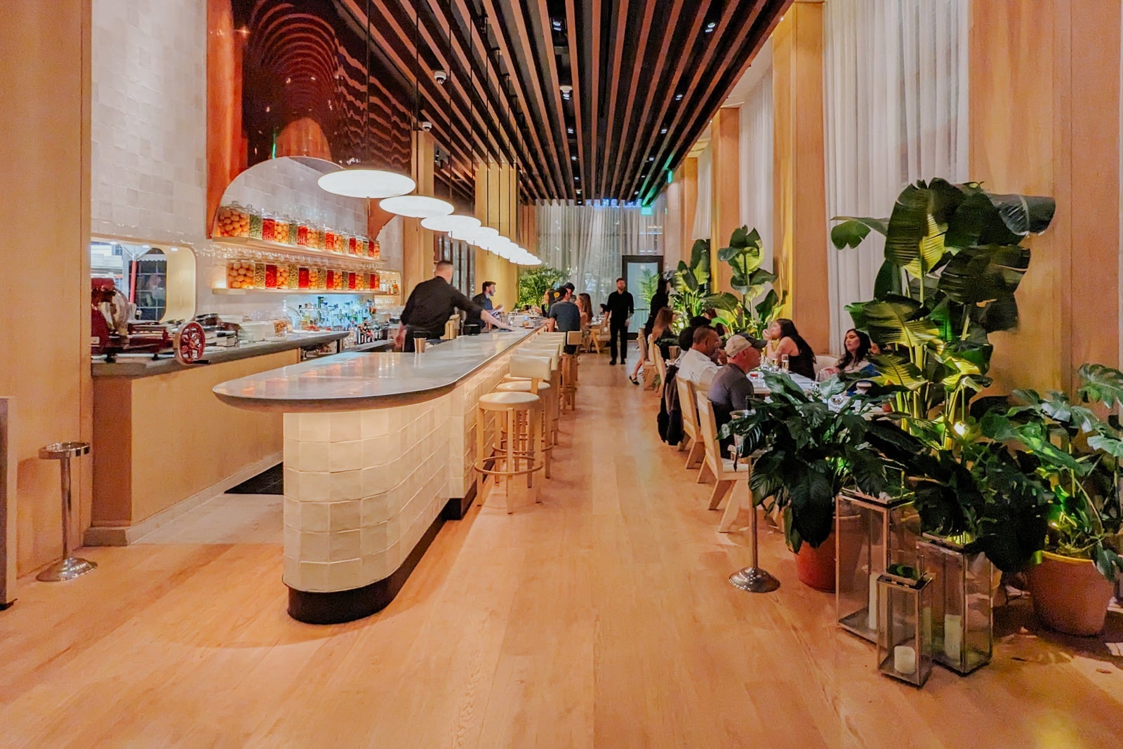 An impressive eight food and beverage venues offer everything from grab-and-go coffee at the cafe-style Market at Edition to a four-course, prix-fixe menu from award-winning chef John Fraser at the vegetarian-focused Lilac restaurant. Glinting green tiles in the open kitchen, emerald upholstery and a profusion of potted plants underscore the latter's vegetal focus.