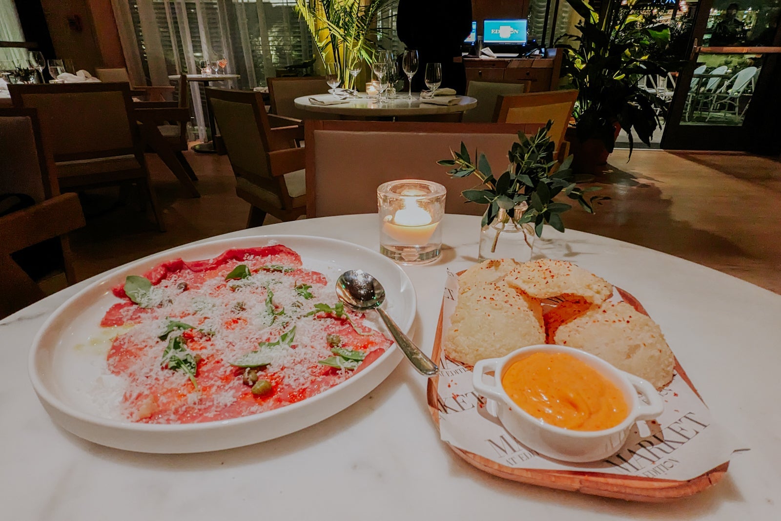 After breakfast, Market offers tasty casual fare, such as onion petals with Calabrian chili aioli and filet carpaccio as appetizers and a rich, spicy pork ragu rigatoni pasta with whipped ricotta for an entree.