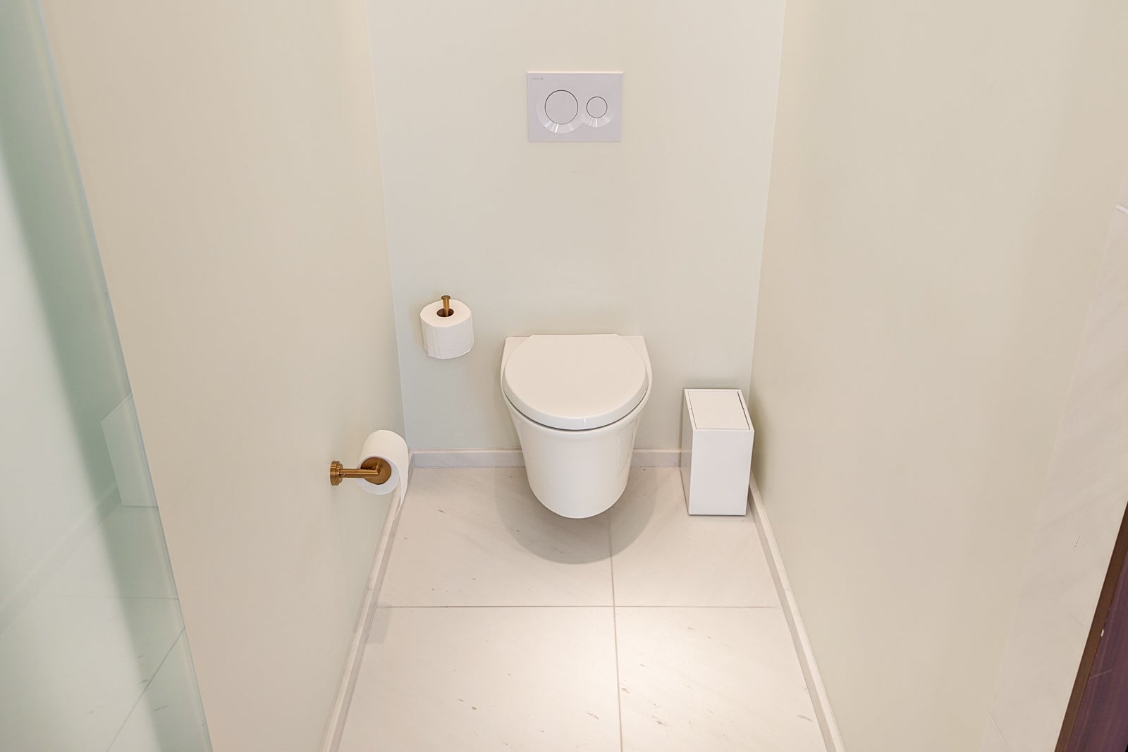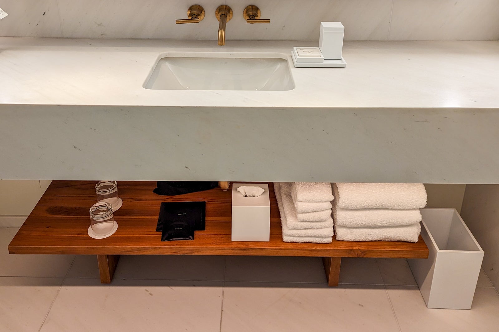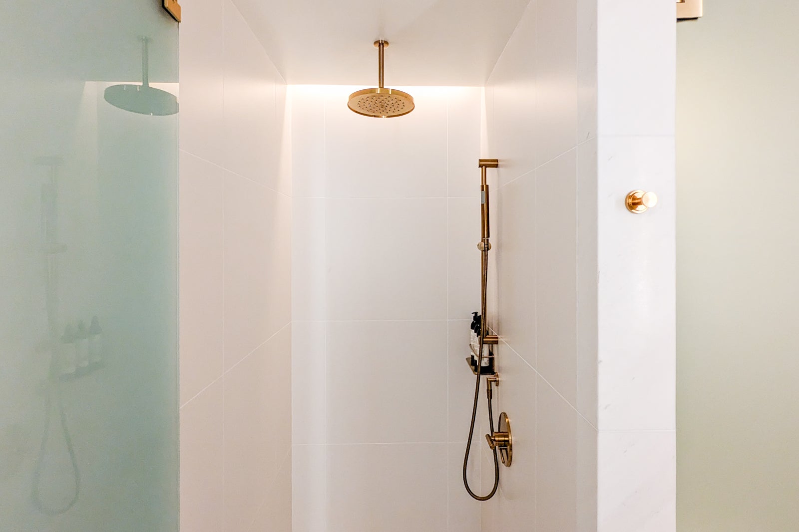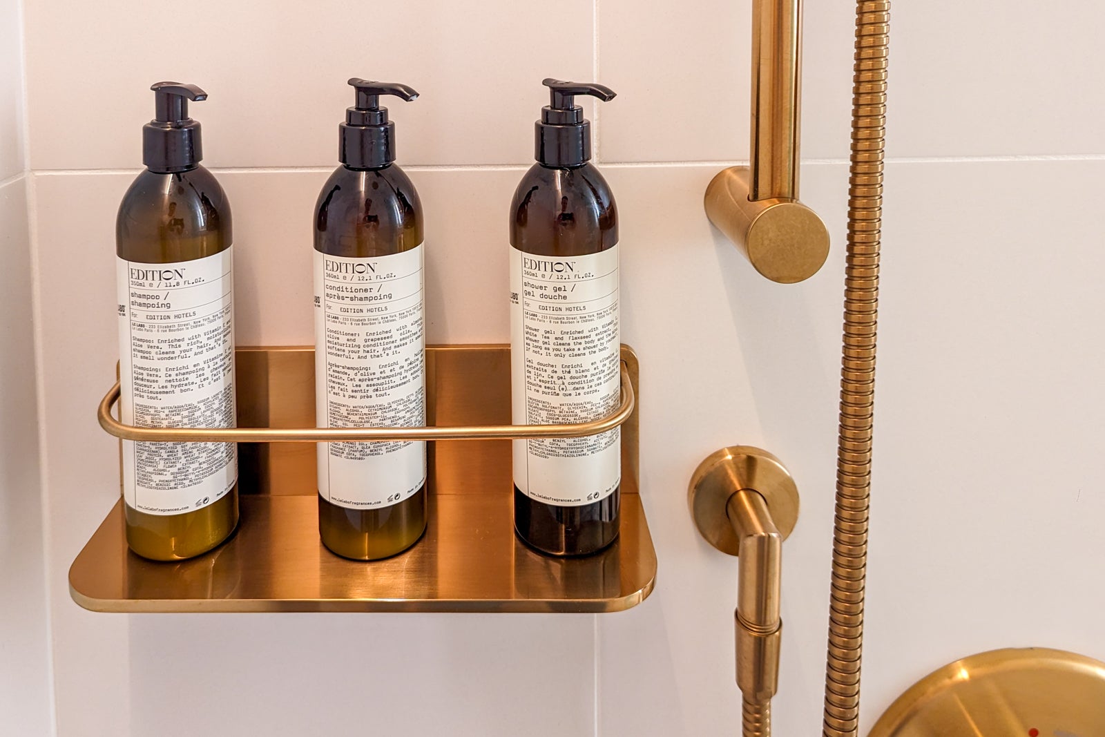 Also in the bathroom, guests will find full-size bottles of Edition's signature Le Labo toiletries, frosted privacy doors to the toilet and a shower with dual gold-plated showerheads — one overhead and one handheld. However, a double vanity would have been merited at this price point.