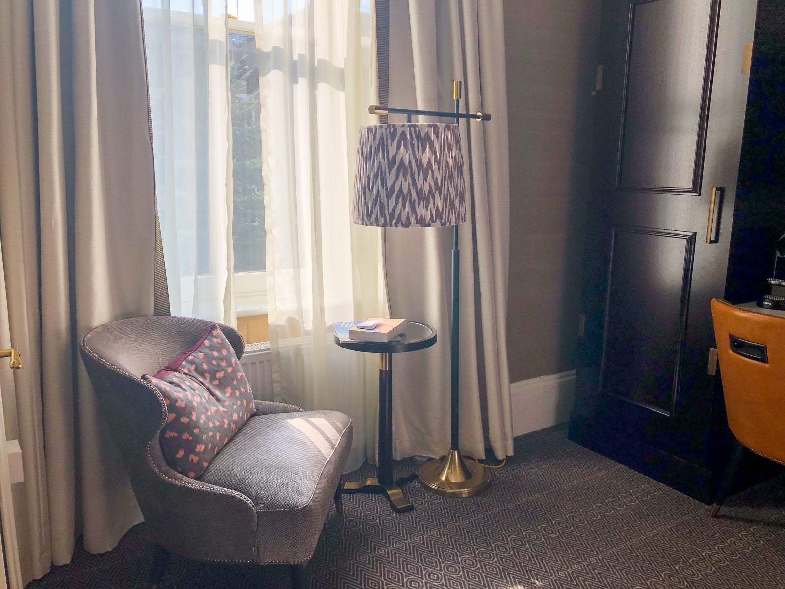 But I soon forgot all about the less-than-impressive stairwell when I walked into the room. I felt immediately drawn to the window area, which had a comfortable armchair, small table with design magazines and a lamp.