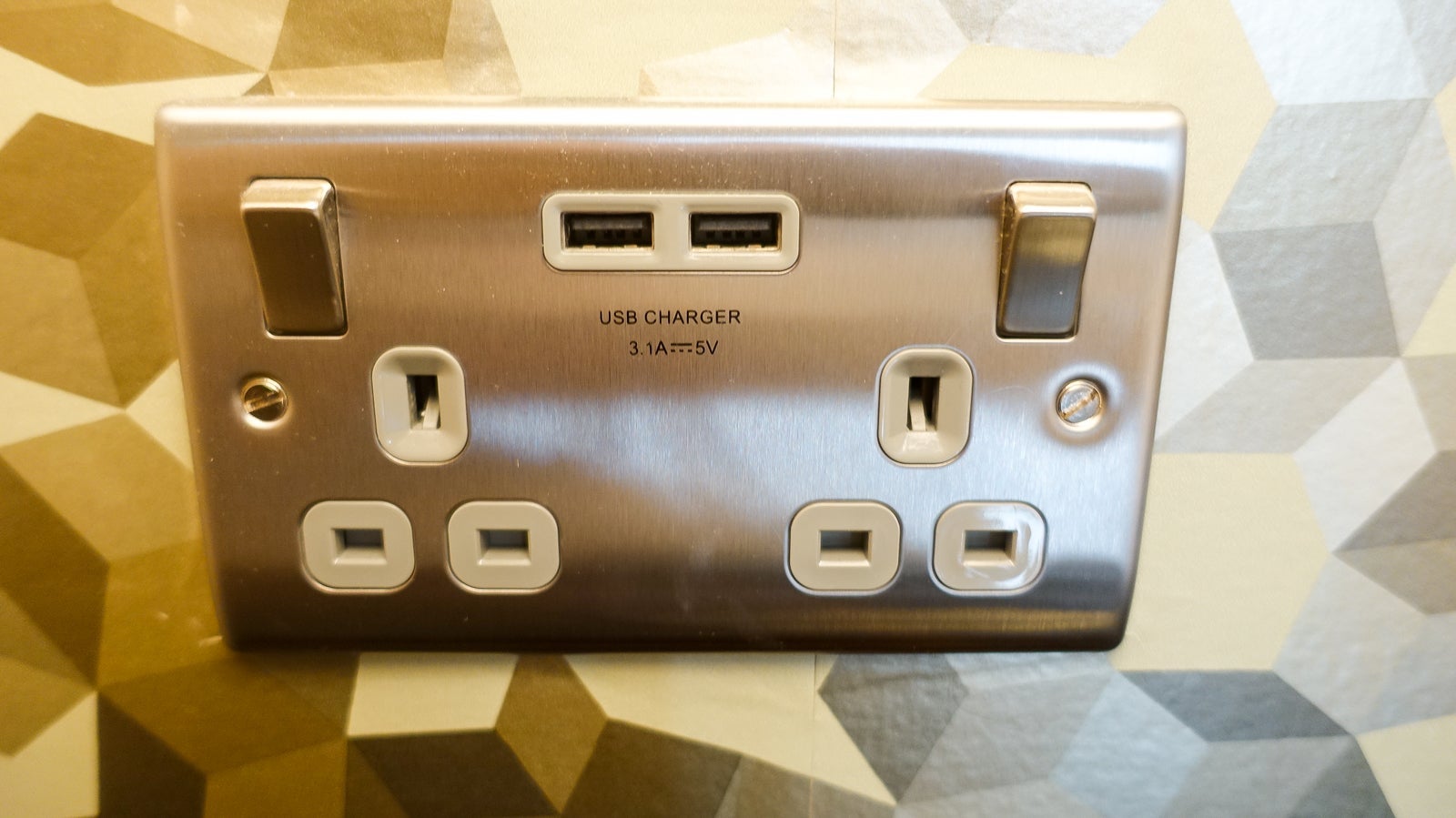 Finally, a hotel with enough outlets to charge my massive collection of technology items!