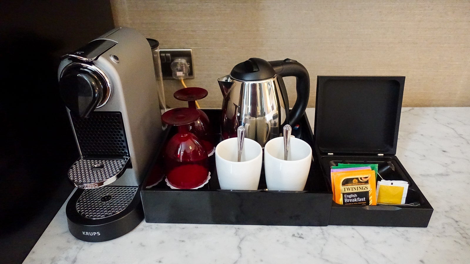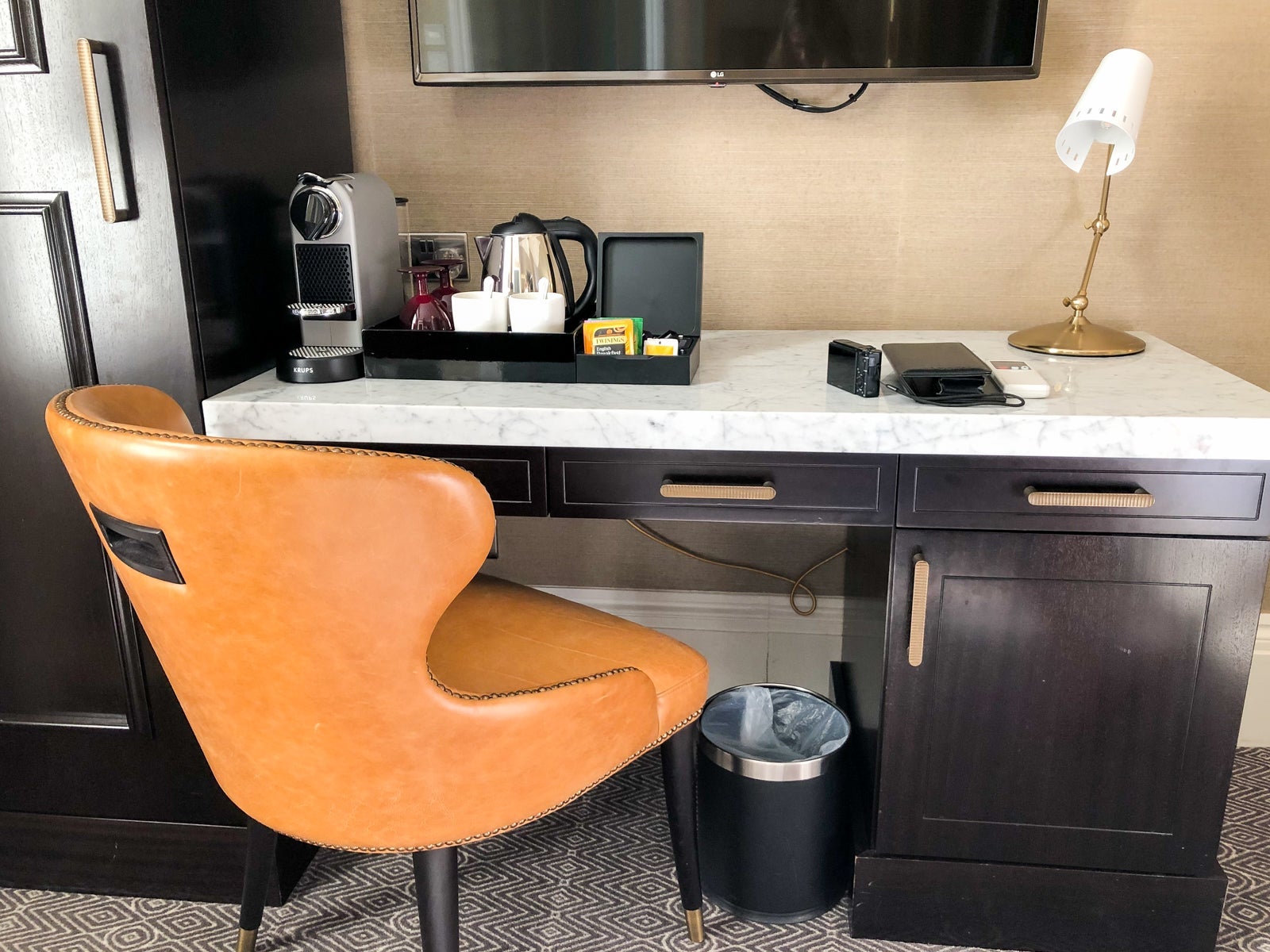 I finally dragged my eyes away from the window to take in the leather chair and desk, topped with Nespresso machine (with free capsules) and a flat-screen TV.