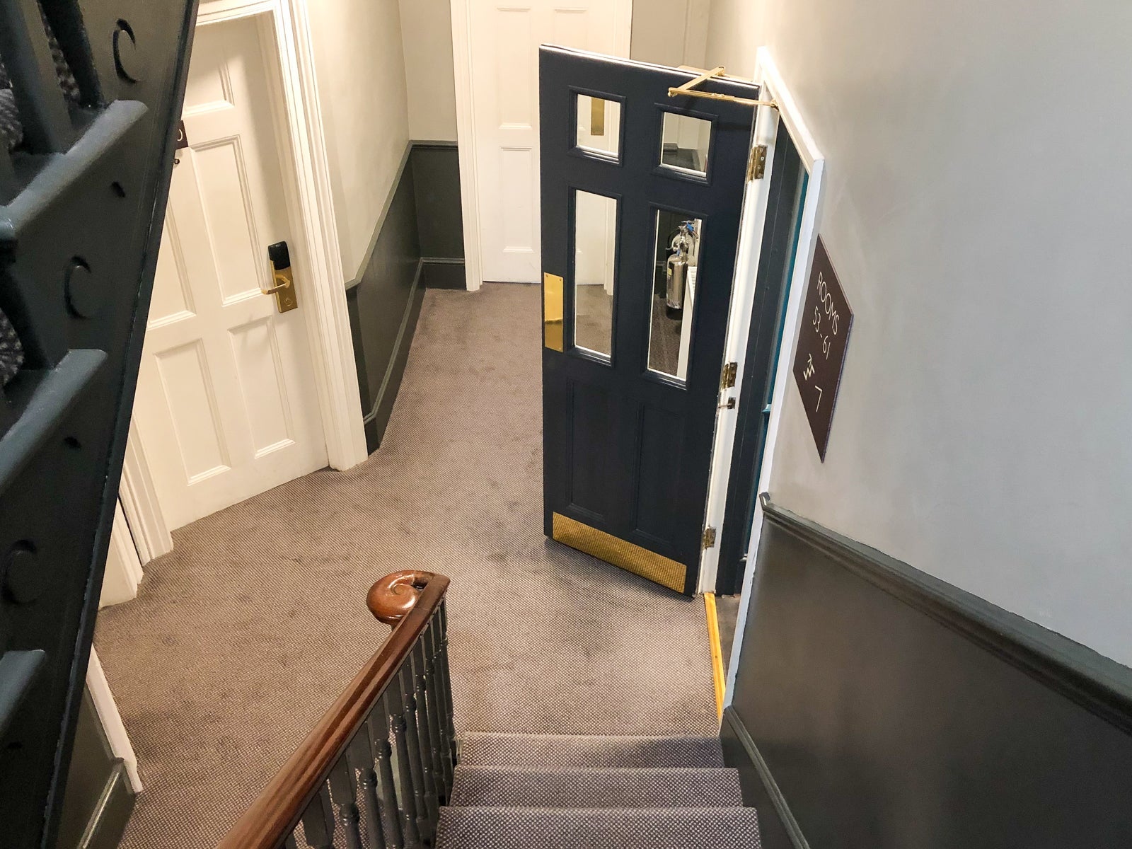 The stairs were the one area that didn't seem to entirely fit the stylish vibe of the hotel. The carpet was a little dingy, and the lighting was automatic, meaning it only turned on when you were already halfway up or down the stairs.