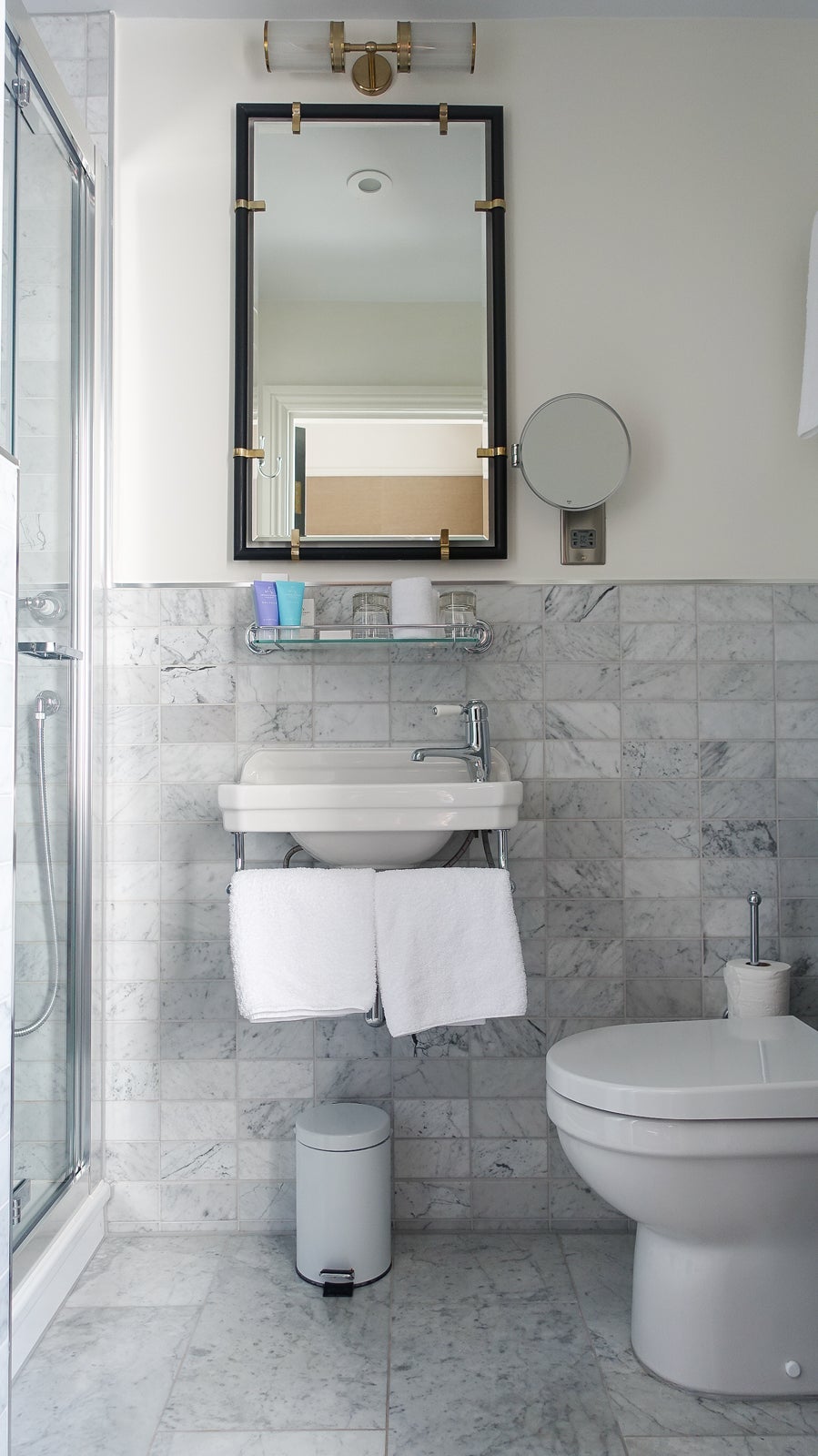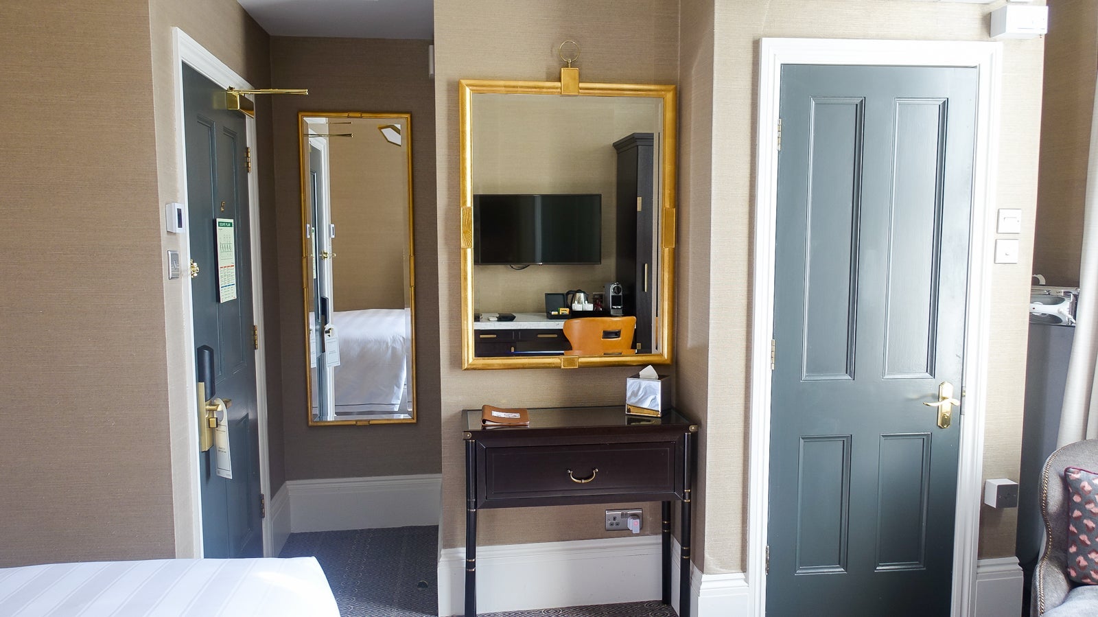 The furniture was in great condition, and I loved feeling like I was staying in the spare bedroom of my stylish yet vintage Edwardian British friend's apartment. I was thrilled to note there were two UK outlets and two USB ports on each side of the bed, as well as electrical outlets by the mirror (perfect for plugging in my curling iron, as British law prohibits outlets in bathrooms) and others by the desk.