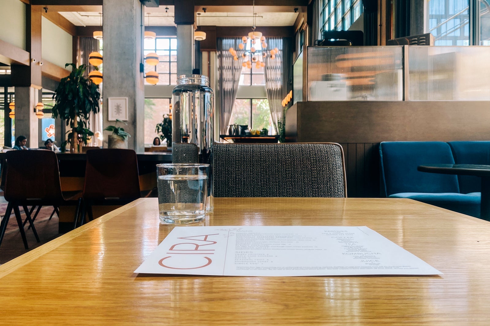 The vibe is friendly, and dogs are welcome. Cira acts as an expanded lobby, where the service is quick and there is no pressure to order immediately or leave your table, at least during the day.
