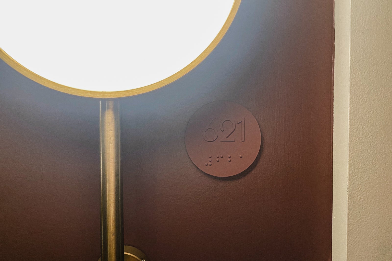 All of the hotel's public spaces are wheelchair accessible. Bedrooms, which are located on floors 2-11, are also accessible to the hearing- and sight-impaired via elevators outfitted with directional signage.