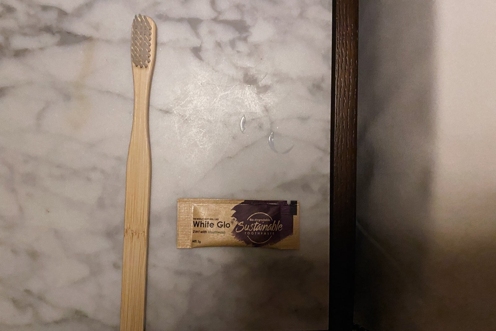 After I realized that I had forgotten my toothbrush head, I asked for the hotel staff's help and they quickly brought up a bamboo toothbrush with toothpaste. Housekeeping is available upon request at the front desk or you can indicate via your door.