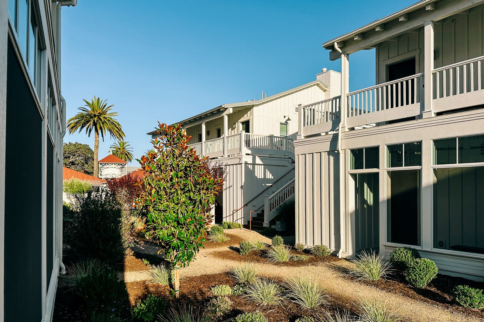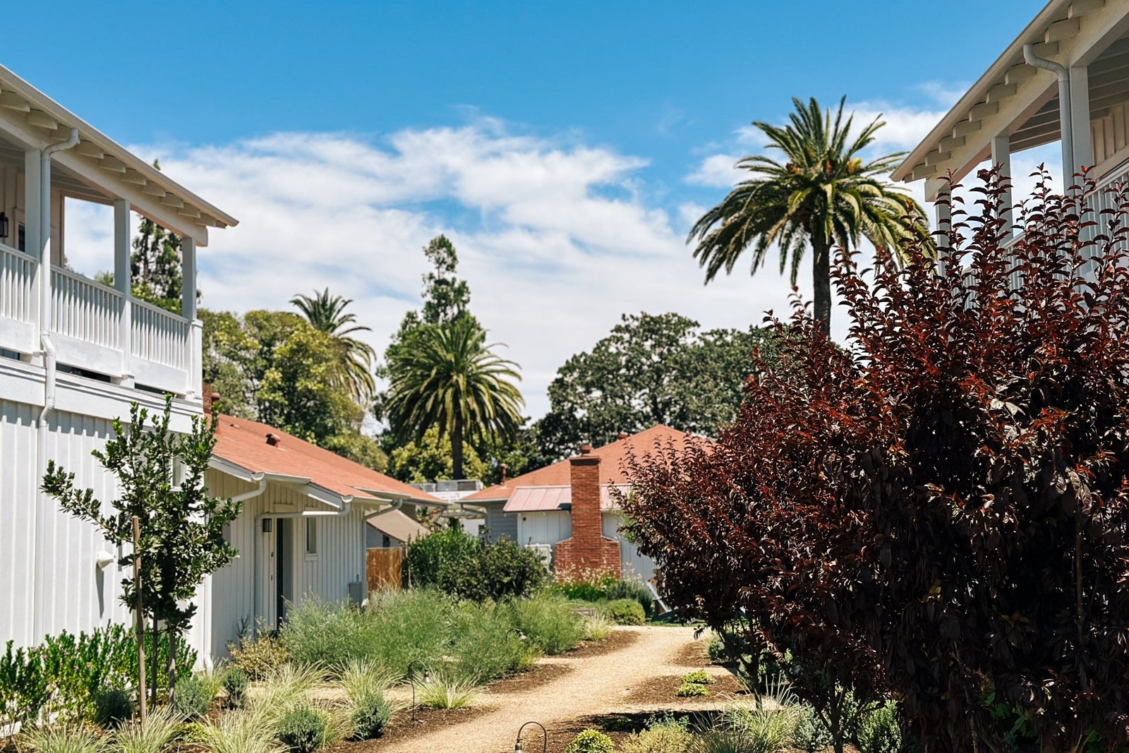 Today, the tony reimagined hotel comprises newly built two-story white clapboard guesthouses that hold rooms and suites in an array of layouts, plus a couple of new cottages and four original bungalows. The latter date to 1886 and were carefully restored down to their wooden floors and clawfoot tubs. The same painstaking attention to detail and authenticity seems to have been given to the public structures, which include the original restaurant and bar, a cafe, a swimming pool and a poolside bar, and an alfresco eatery. Surrounding it all are old-growth palm trees and hearty drought-resistant native plants.