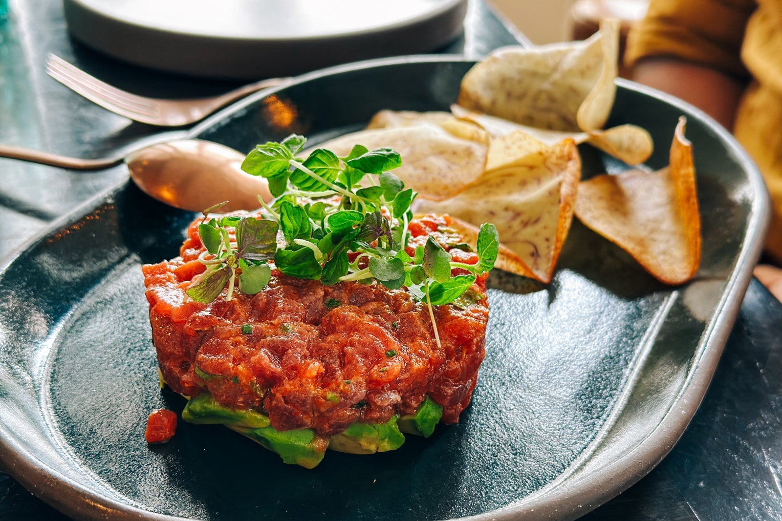 Across the board, all dining outlets source from the bountiful Central Coast's farmers, fishers and ranchers, so I felt confident we would be eating well. But even with "tavern" in the very name of the hotel, I didn't expect to savor so many standout dishes in one meal. My family — including my husband, toddler and 6-month-old baby — snagged an early-bird special reservation (we were in good company with two other young families) at The Tavern and sat aside the long open kitchen since the weather was too hot to enjoy the large outdoor patio with a vine-wrapped trellis.
