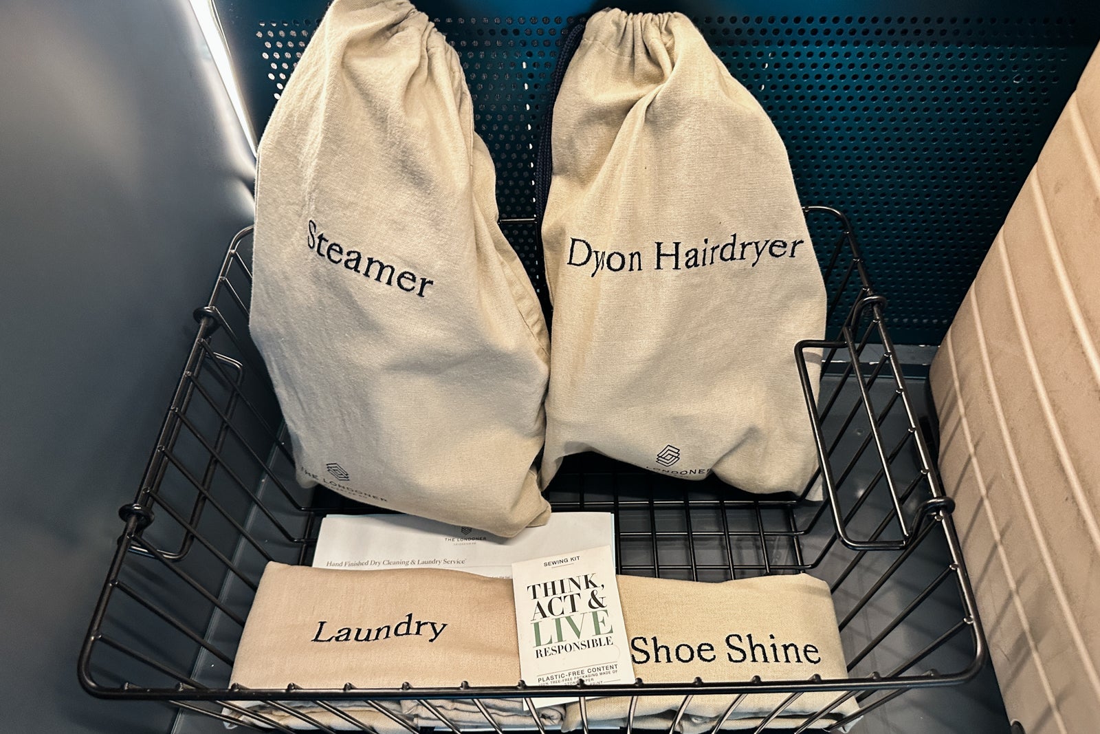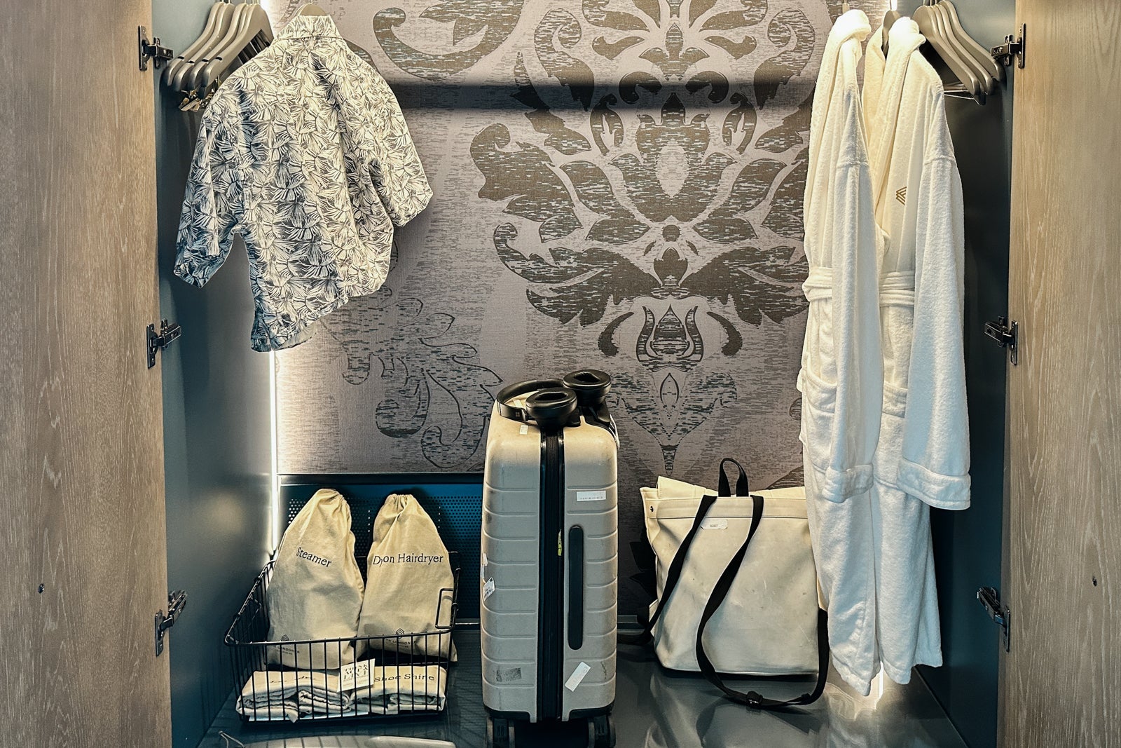 The large and functional closet had plenty of space to store my carry-on bag and backpack. It stored two robes, slippers, a Dyson hair dryer and a steamer.