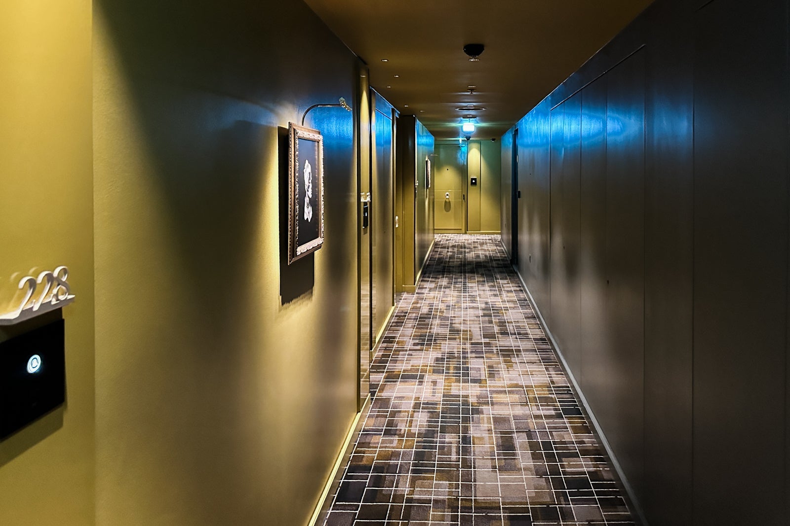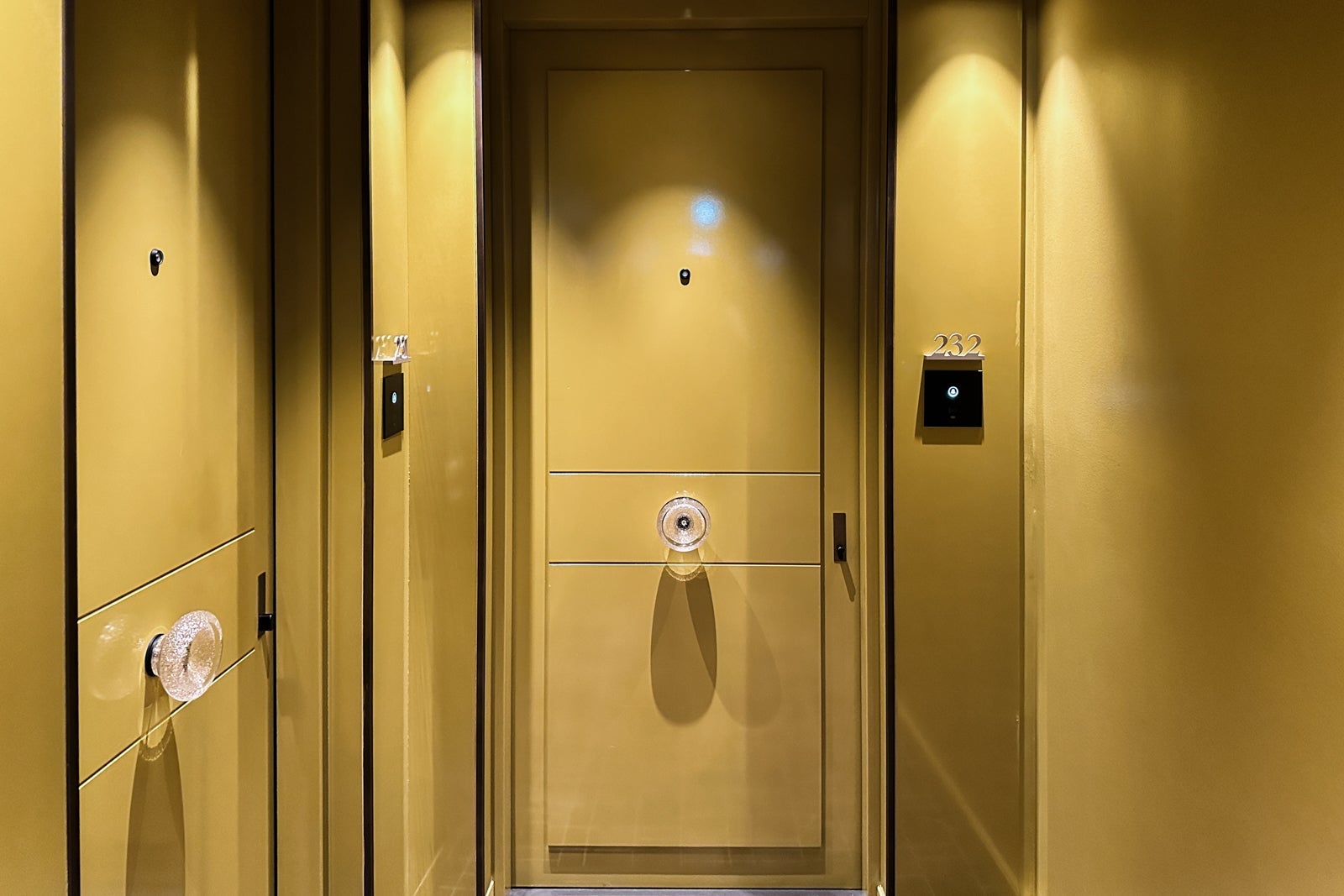 My room, number 232, was at the end of a stylish, monochrome yellow hallway behind a glossy yellow door with an ornate center doorknob. The door featured a doorbell that had a light to signal whether I needed privacy or wanted my room made up.
