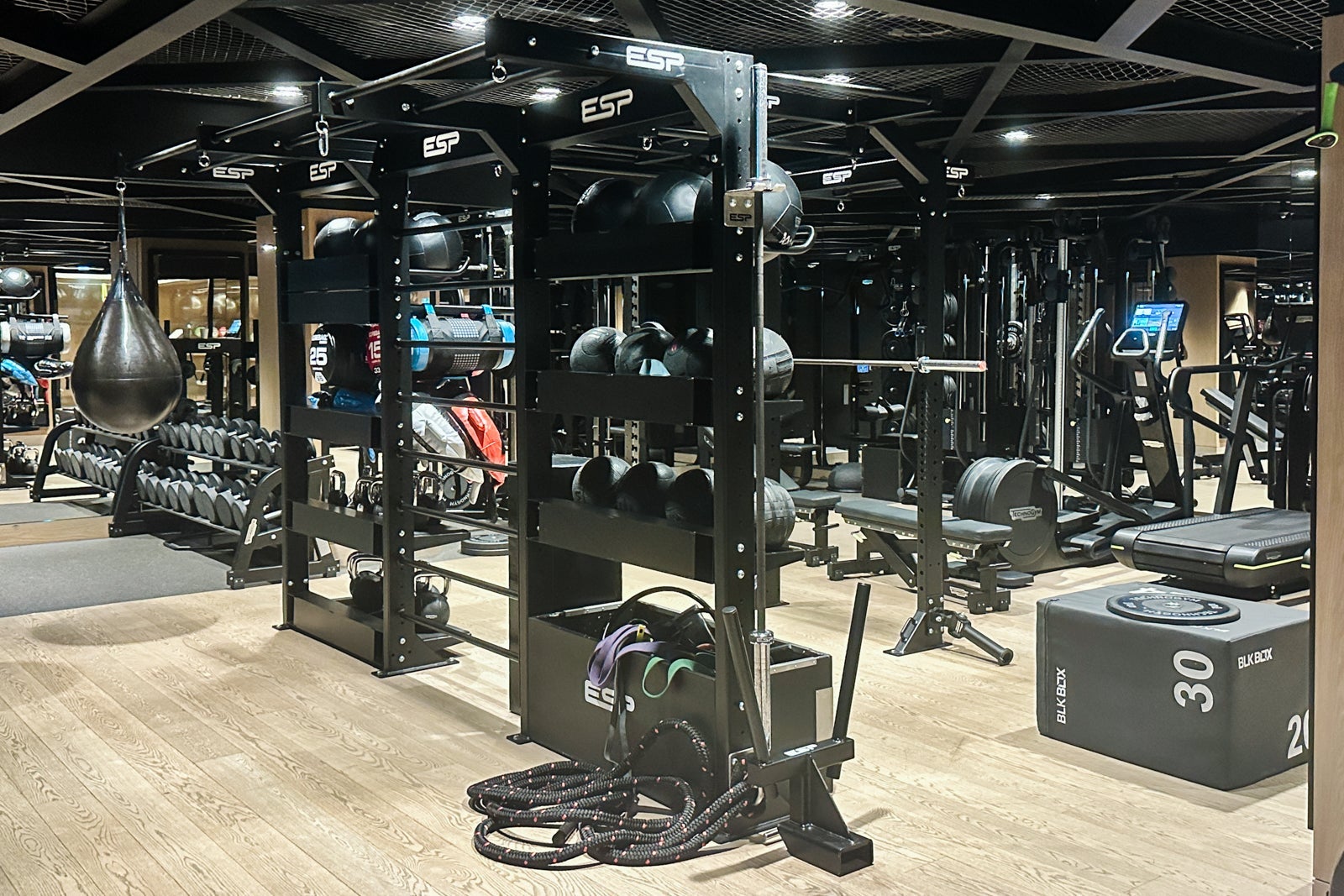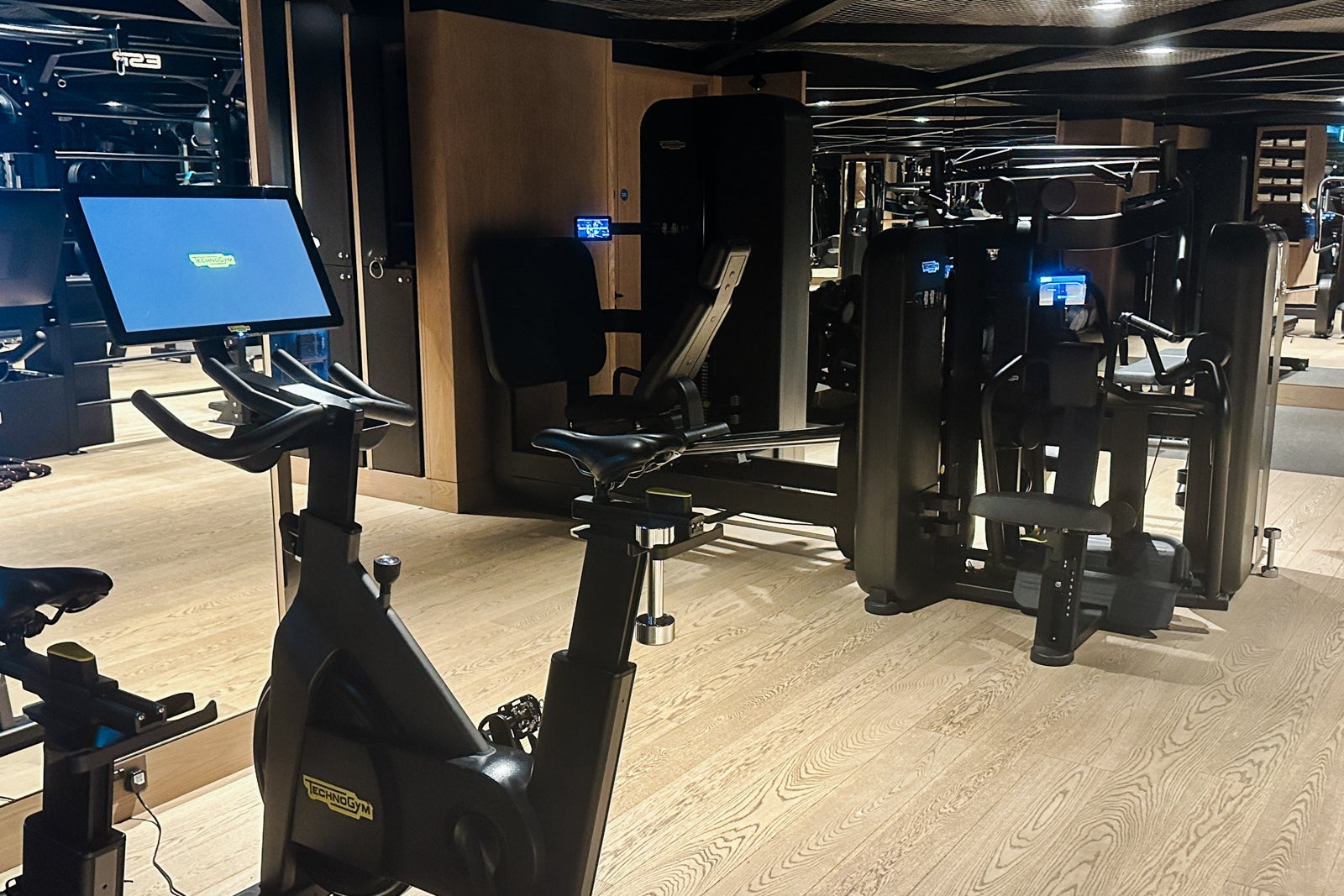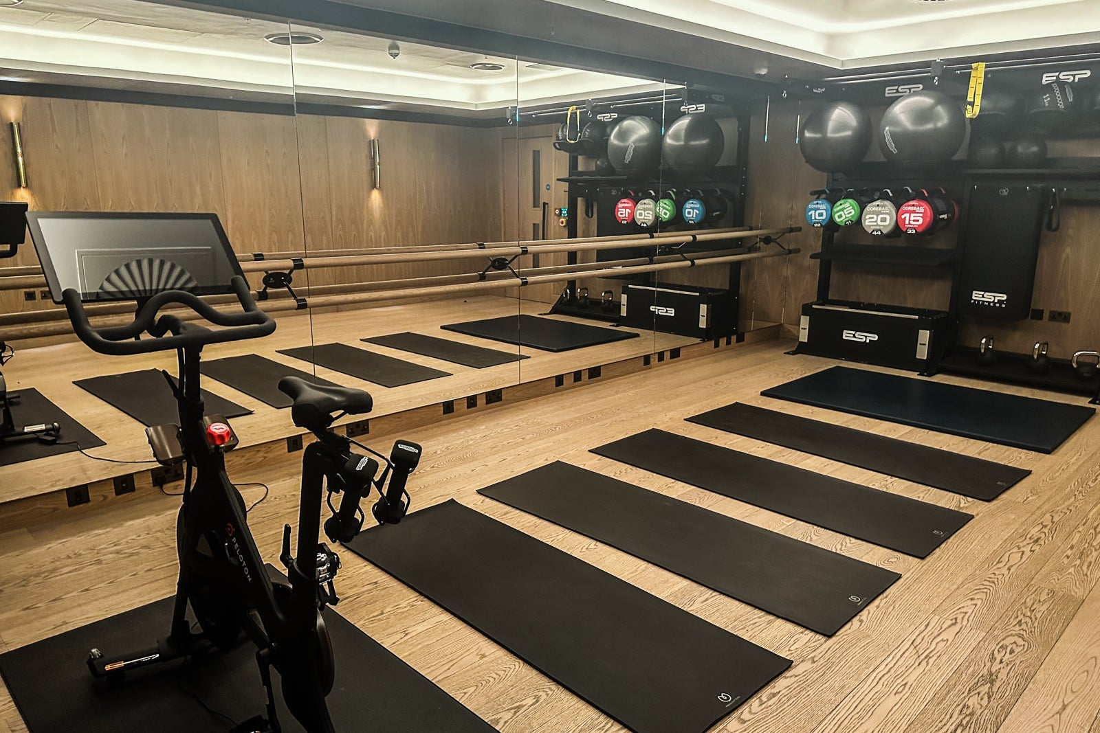 The spacious gym area featured Technogym equipment such as bikes and treadmills, free weights, mats and a separate fitness studio.