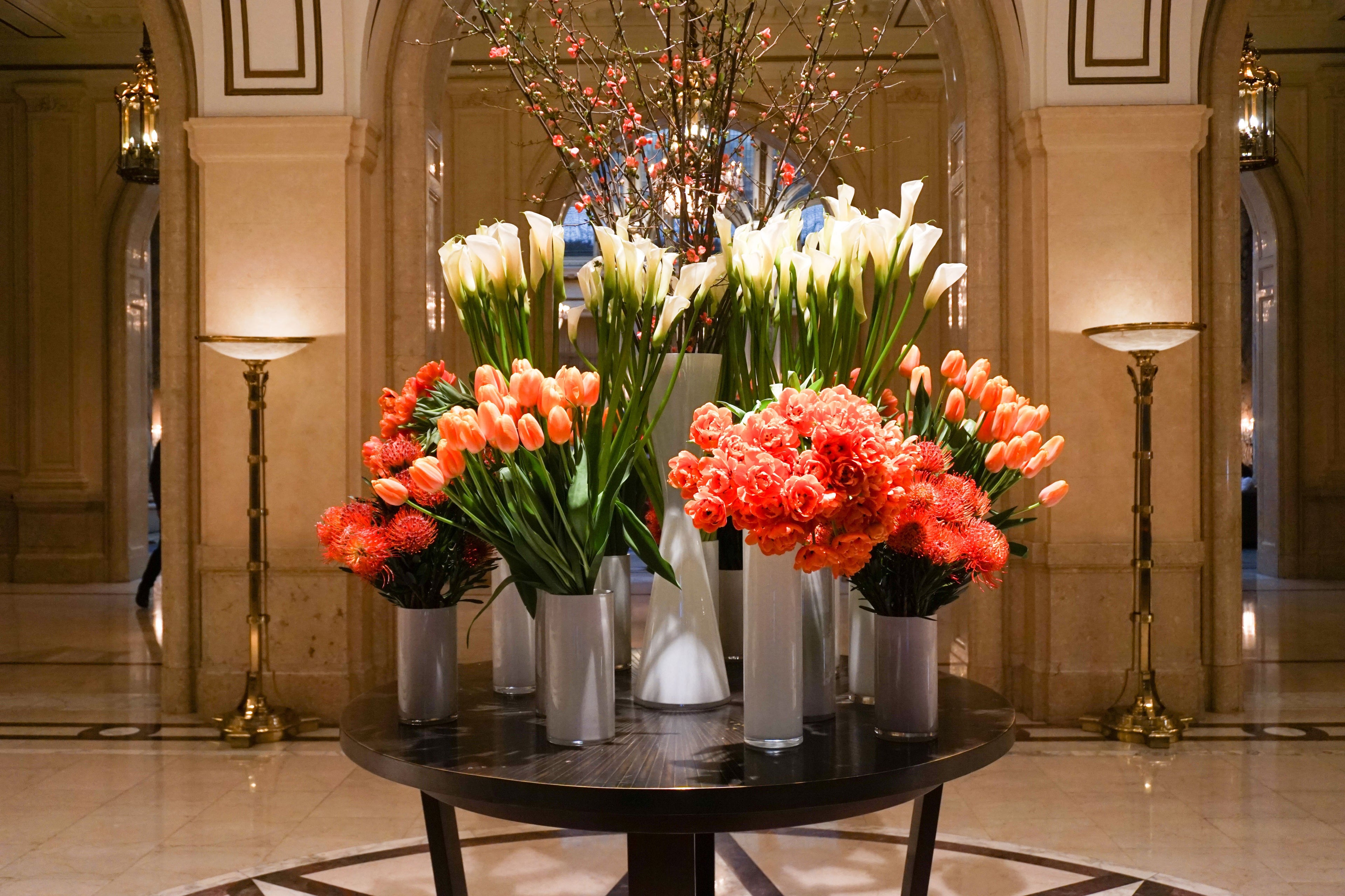 Beautiful fresh flower arrangements were near the front doors.