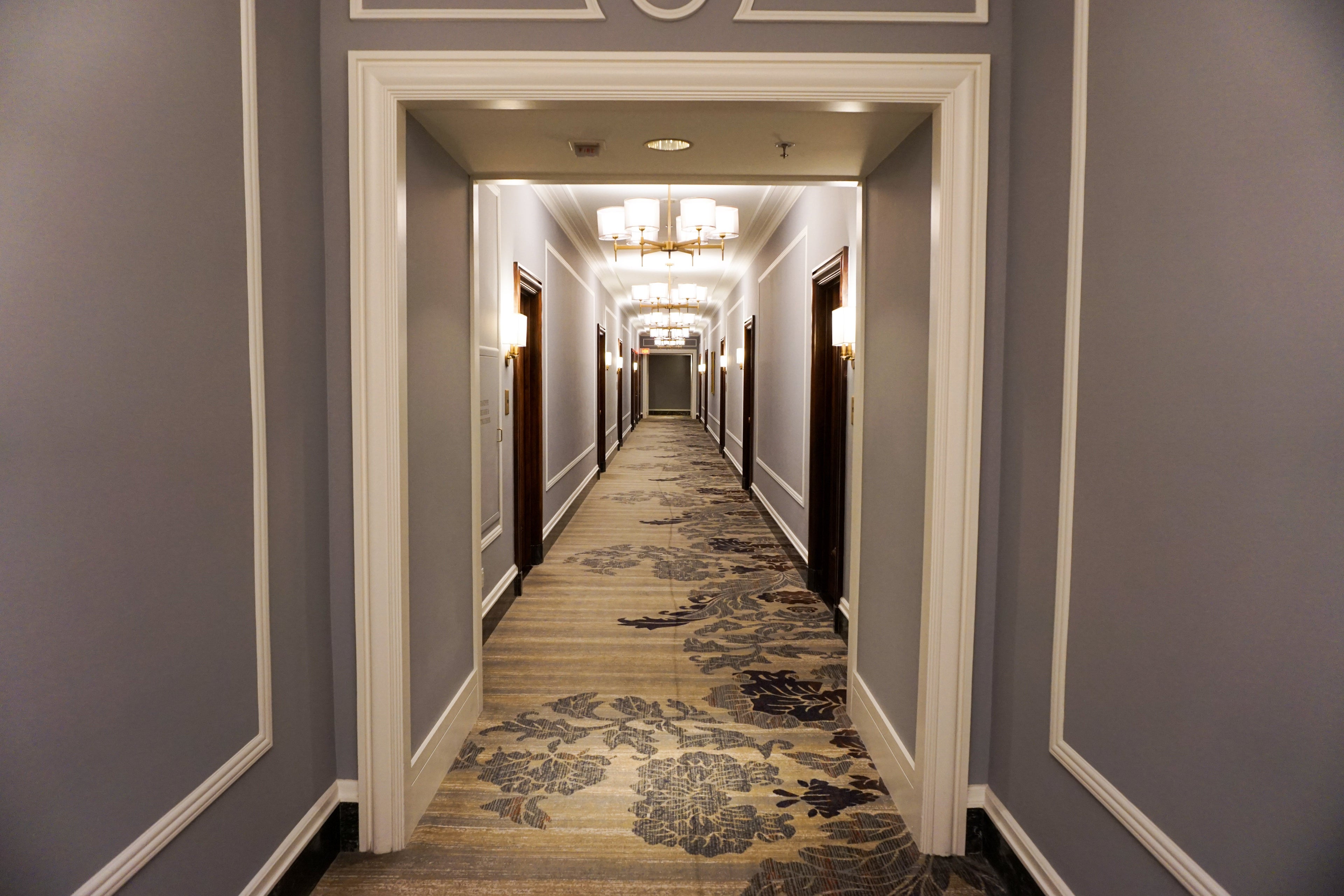 Guest rooms at The Palace are arranged in a Figure 8, with elevators in the middle. Room 747 was located on the edge of the "8." The hallways had a classy, old-world feel and were dotted with relics from the past like a now-defunct mail chute.
