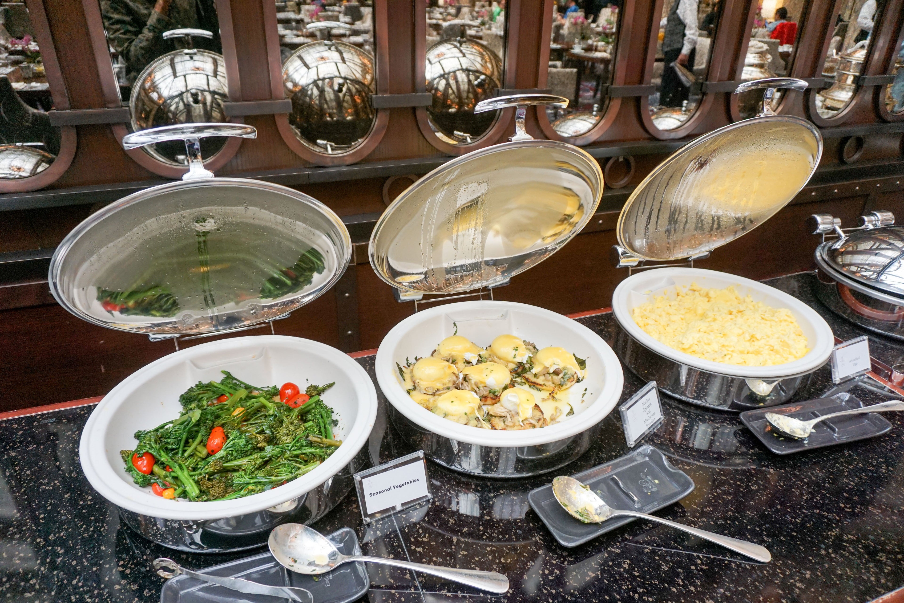 The hot items in the buffet usually consisted of the basics like scrambled eggs, bacon and french toast, along with a rotating selection of different types of Eggs Benedict, sauteed veggies and a few Asian options like steamed greens.