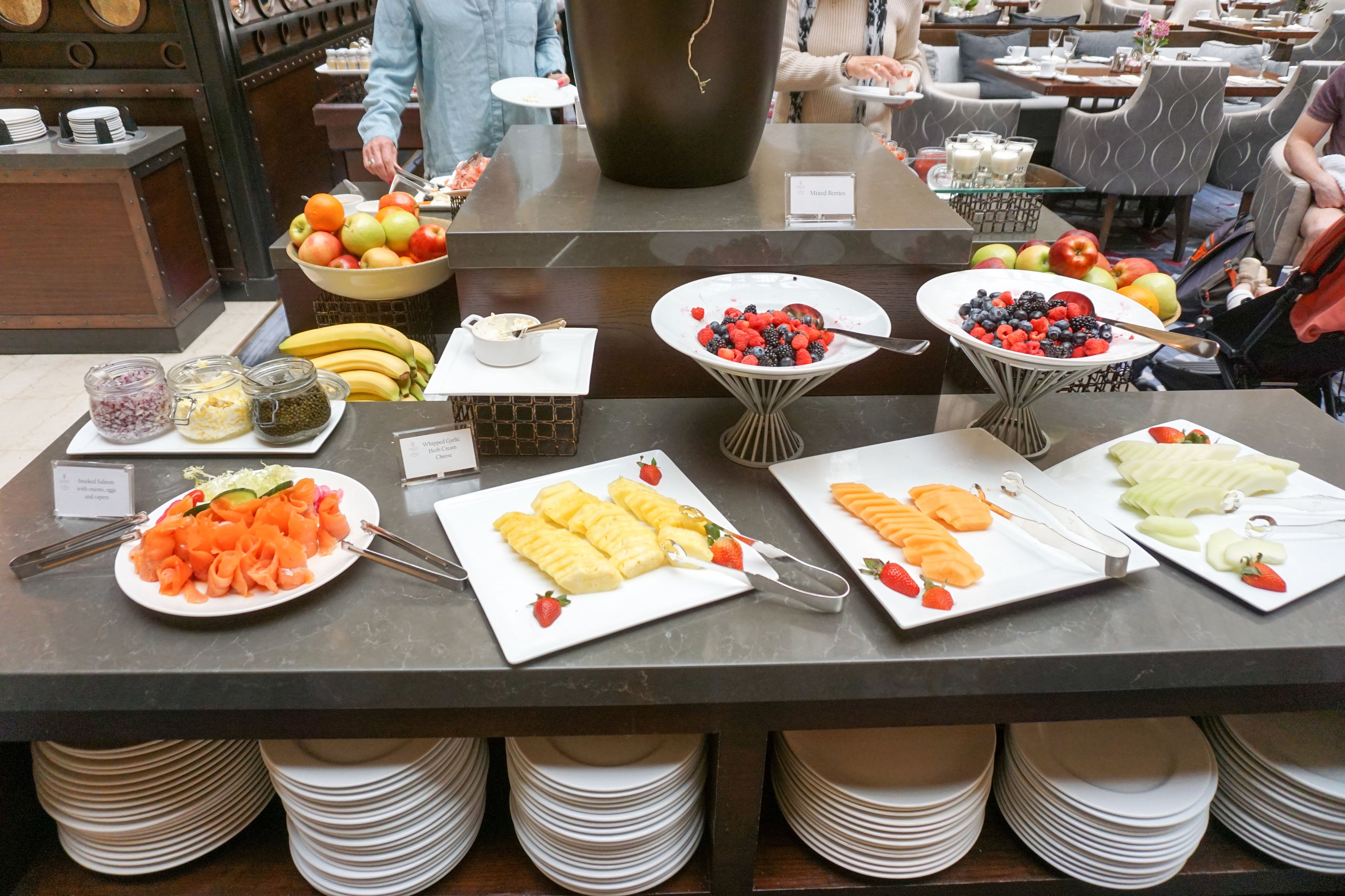 Platinum guests are entitled to enjoy the two side tables (cold items and baked goods) along with orange juice and tea/coffee for free, or pay an upcharge of $7 per person to enjoy the hot items which I thought was fair and well worth it. If you were to pay outright, the full breakfast buffet will run you $39 while the continental breakfast buffet was a pricey $28. You could also order à la carte -- items ranged from $20 to $30. I found everything from the crunchy veggies and delicate pastries to the scrambled eggs to be delicious -- not $39 good but pretty darn good.