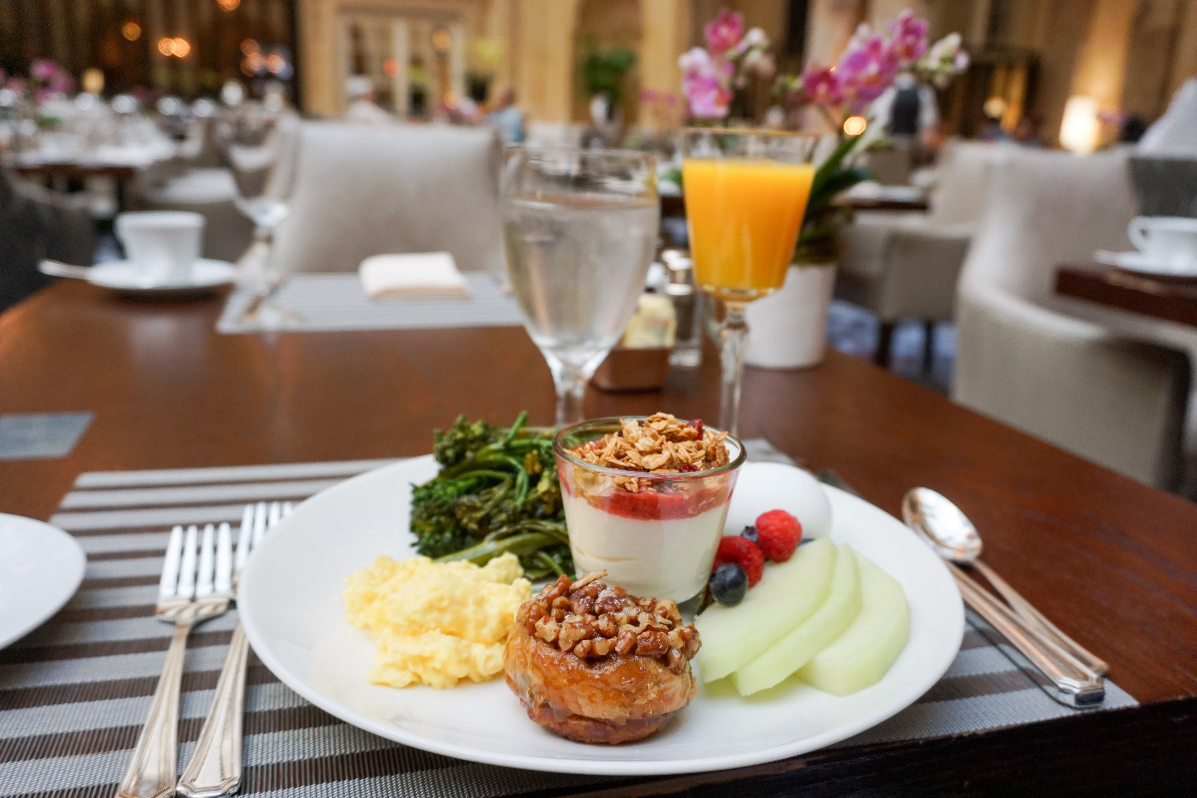 I generally do not have high expectations for service at American hotels, but the servers at breakfast were truly top-notch. Every time I stepped away from the table to the buffet, or even once to take a call, my napkin was folded and placed on the table and beverages were refilled. Literally. Every. Time. The other awesome part about breakfast was just sitting in the airy, light-filled Grand Court. It is such a beautiful room. A Californian à la carte lunch and dinner is served in the space along with high tea at a cost of $68 per person.