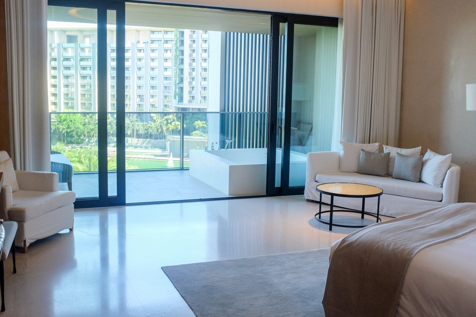 The balcony was hands-down my favorite feature of the room. It was furnished with a comfortable sofa lounge and a tub.