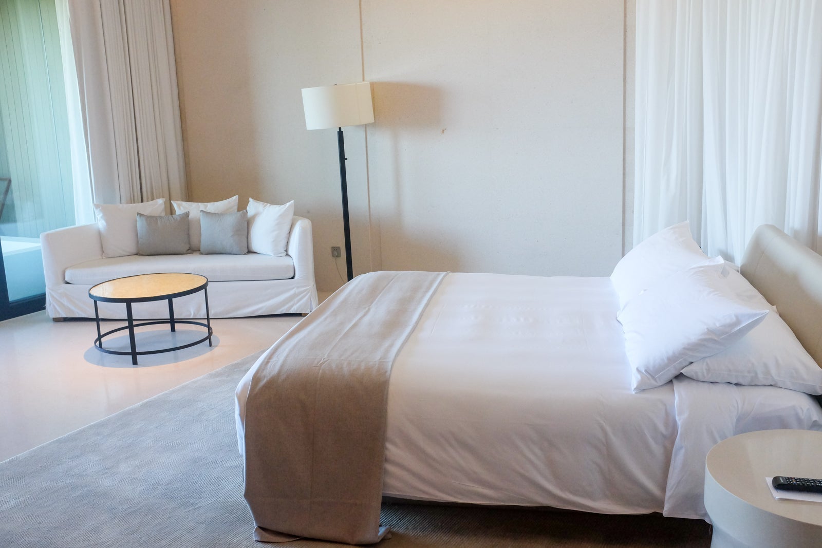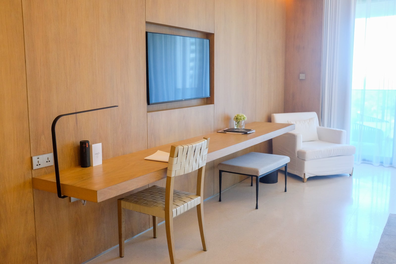 The third-floor room was bright and quite spacious, with minimalist, soft white, beige and wooden finishings.