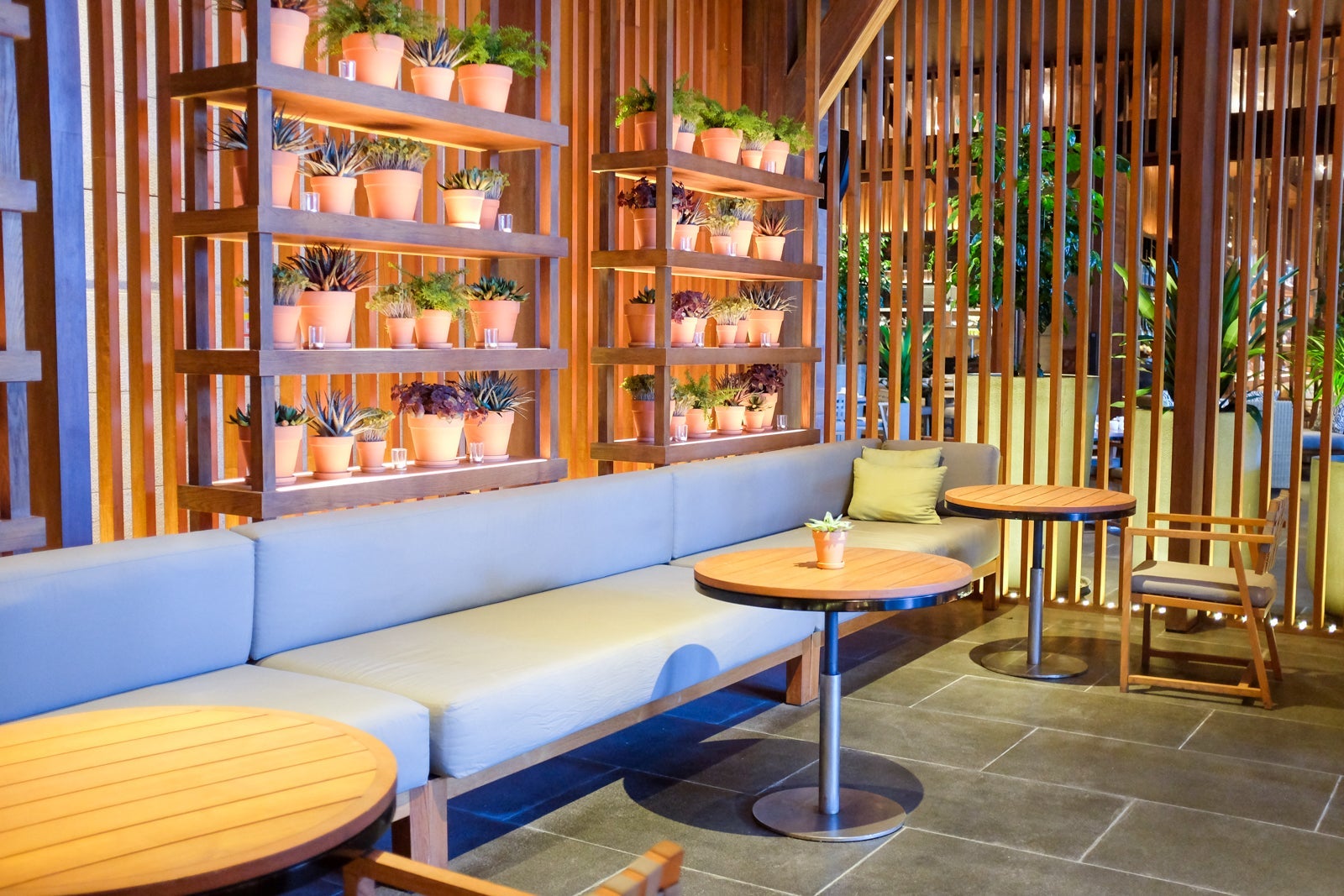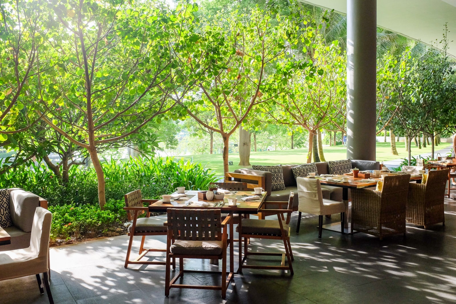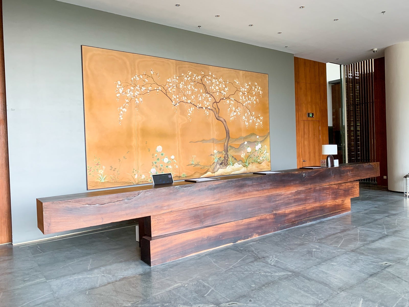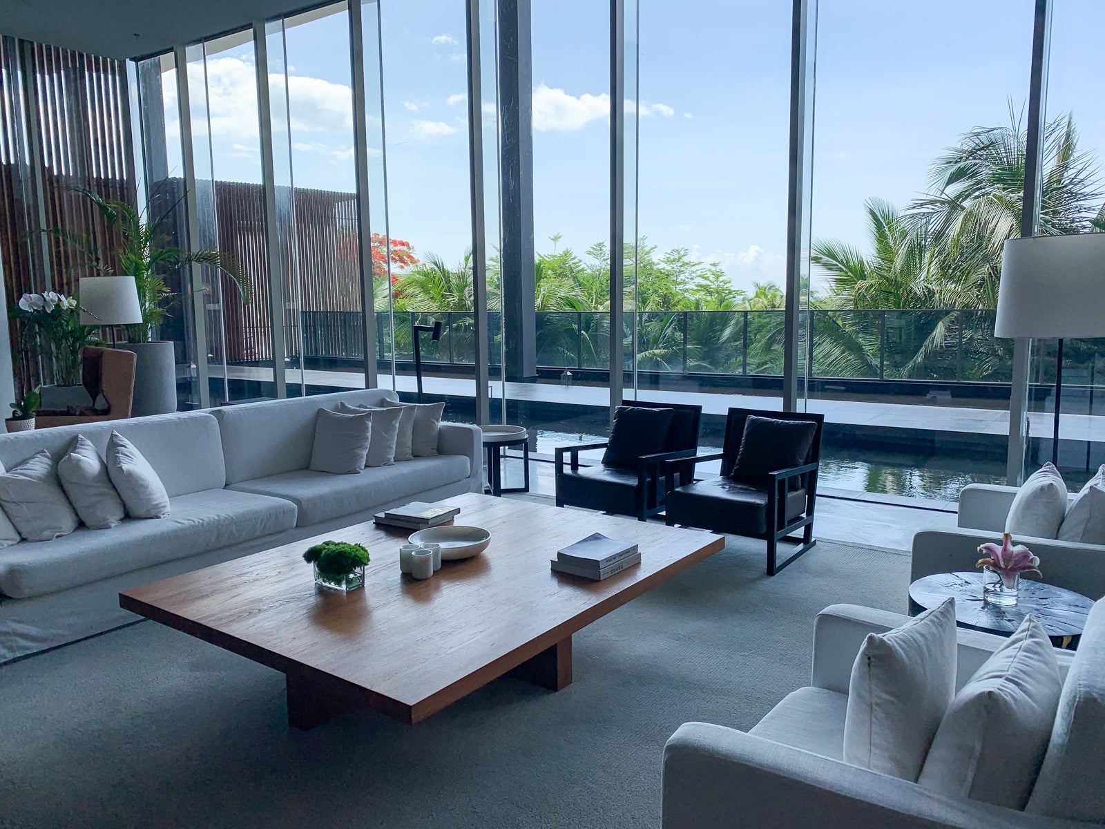 The primary pickup and drop-off area led us straight into a majestic, open-air lobby with 50-foot high ceilings and bamboo panels throughout.