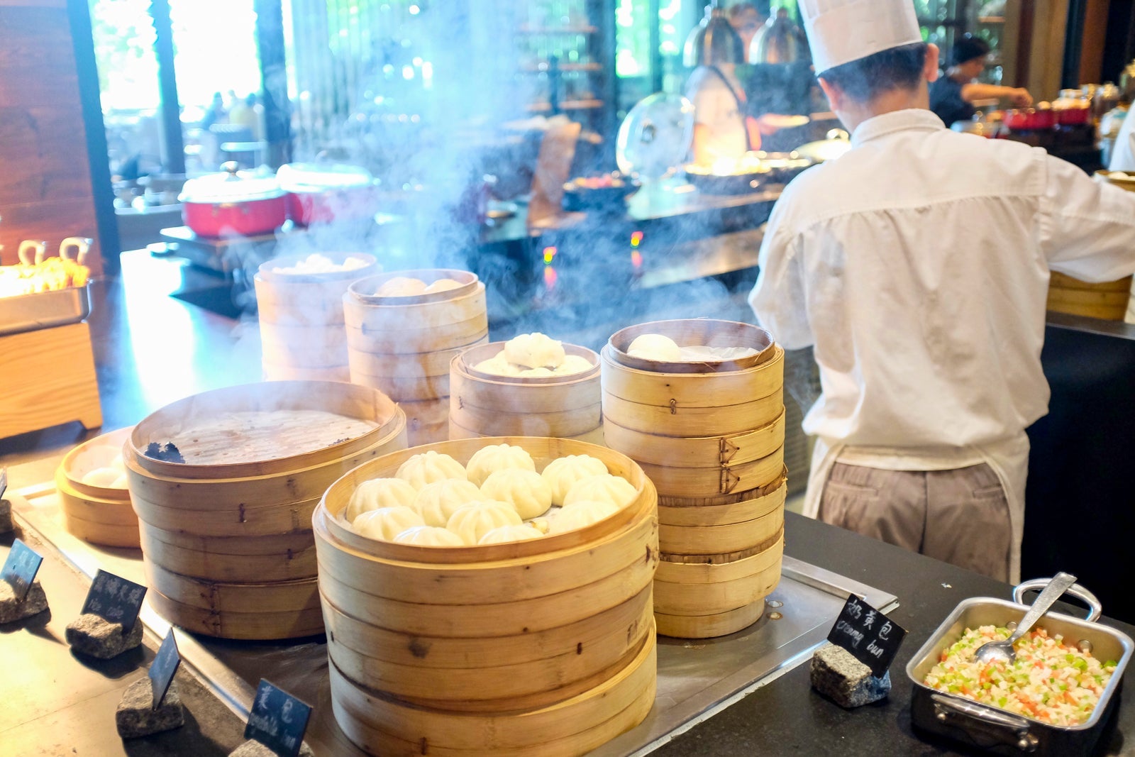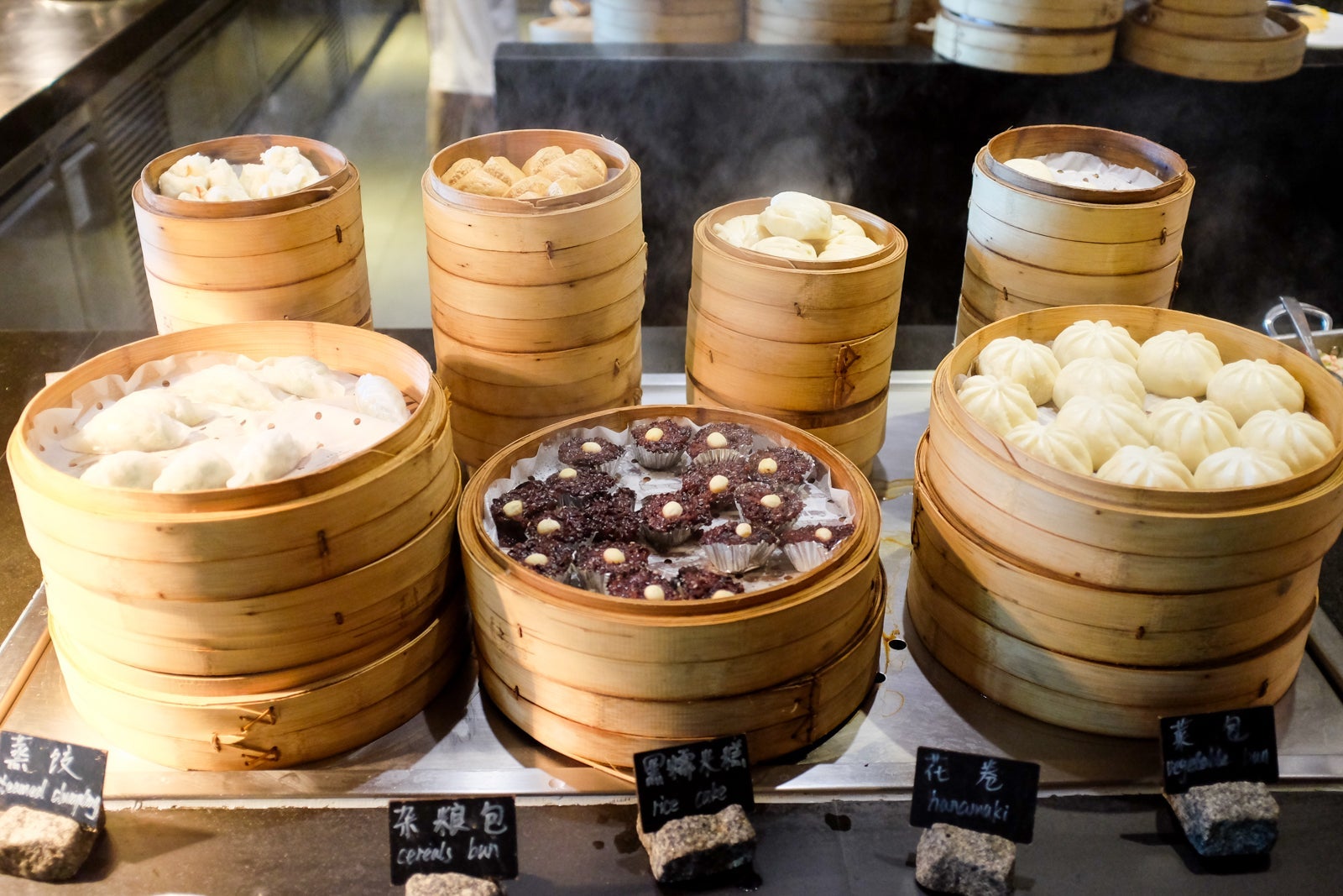 The dim sum station had a solid variety of buns and xiaolongbao dumplings.