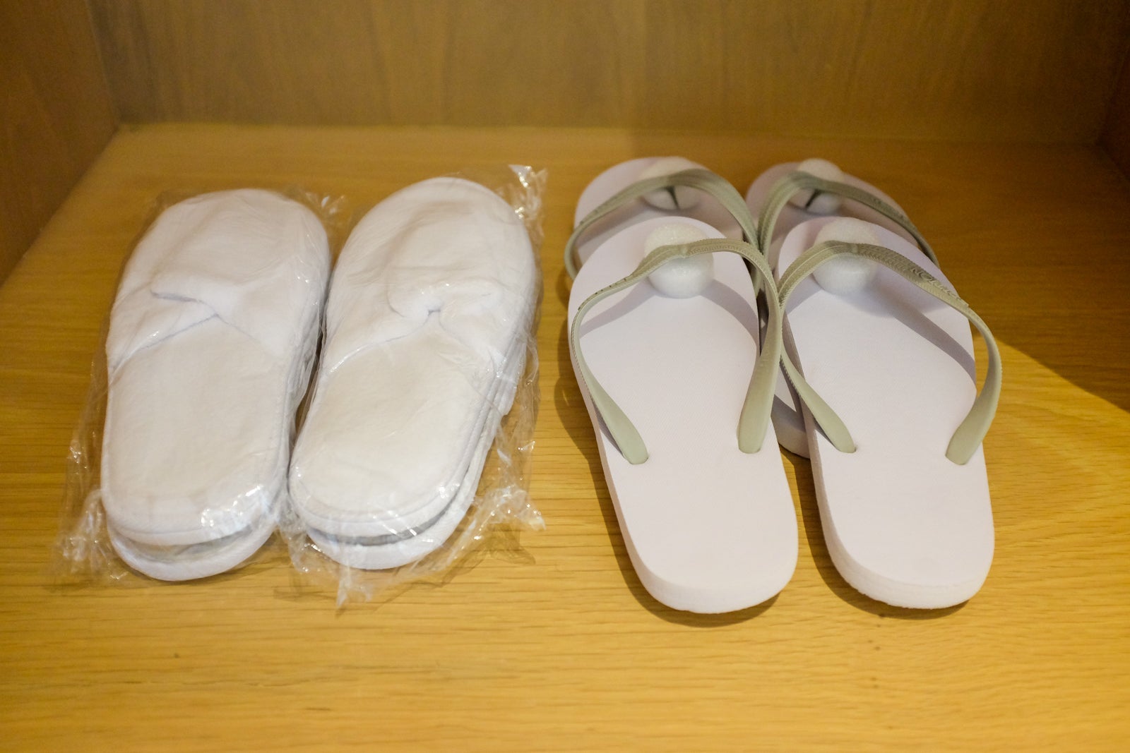 The hotel also provided a couple pairs of slippers and beach sandals.