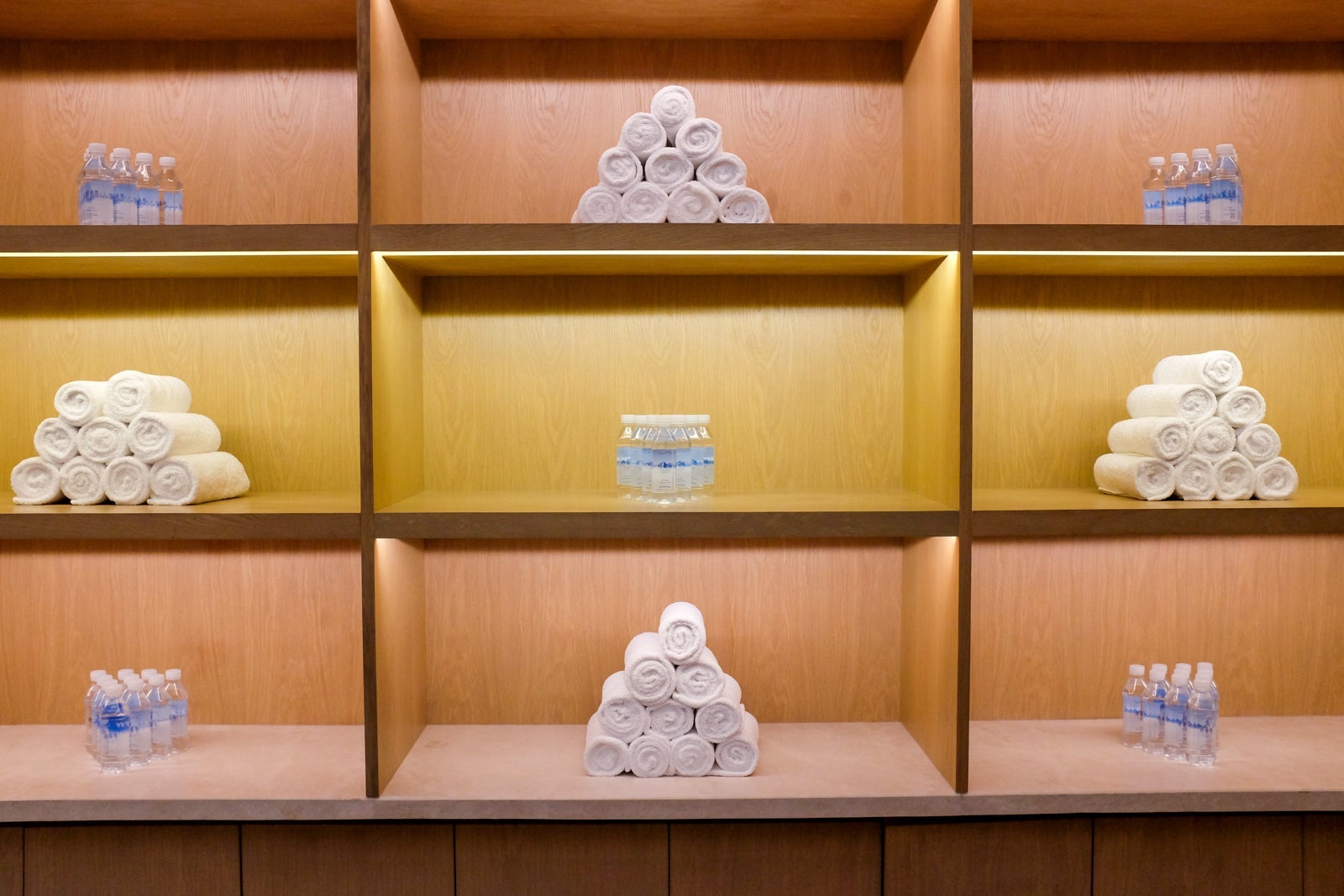 The adjacent shower rooms offered complimentary bottled water and cold towels.