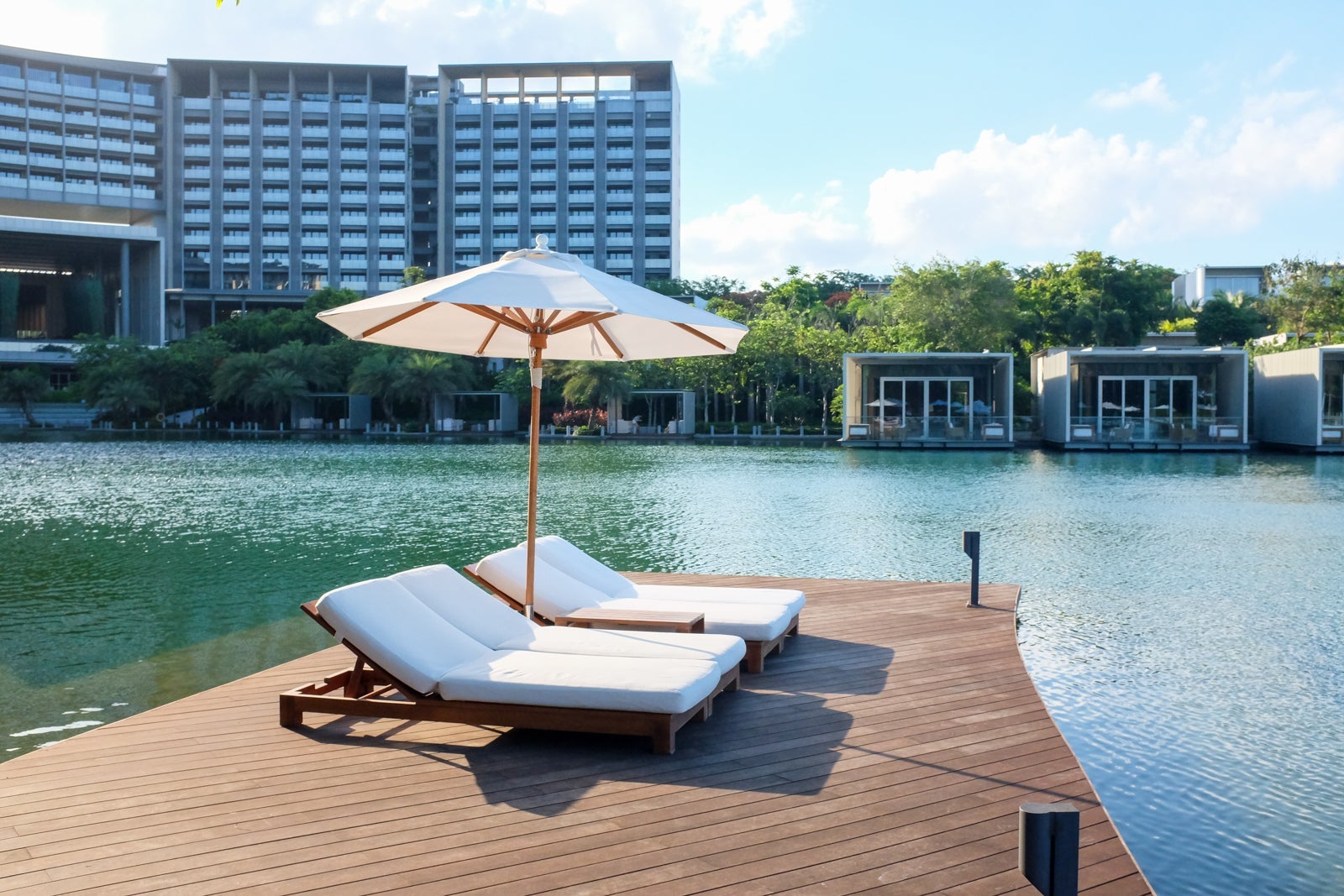 The lagoon was flanked with boardwalks and scenic lounging areas.