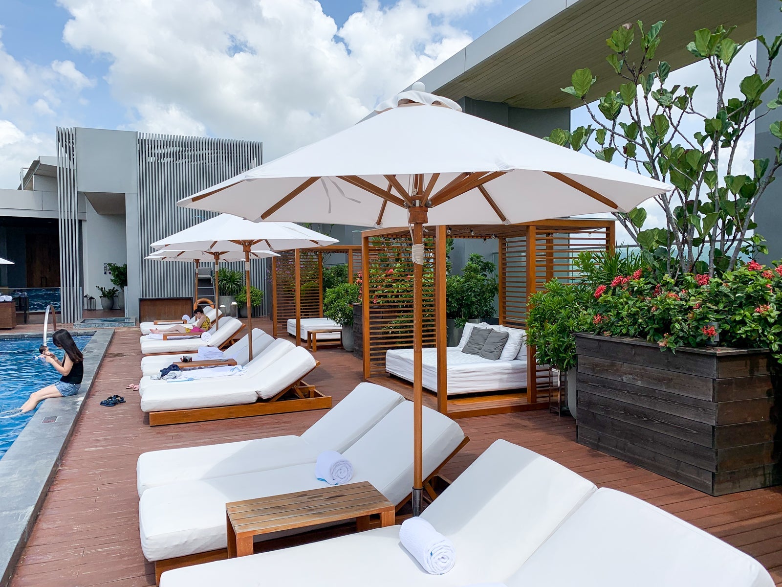 Perhaps the most exclusive views at the hotel were from the rooftop pool, which was by a teak deck next to the Sky Bar restaurant.
