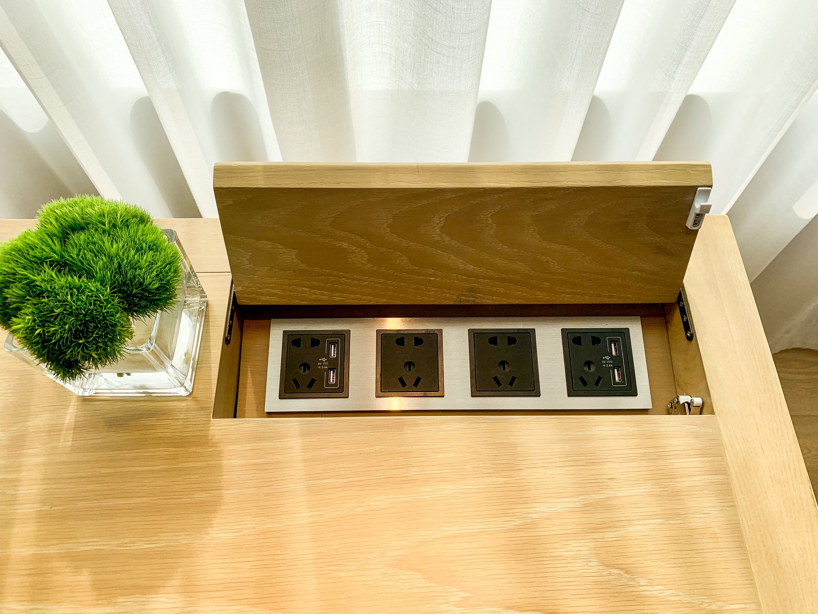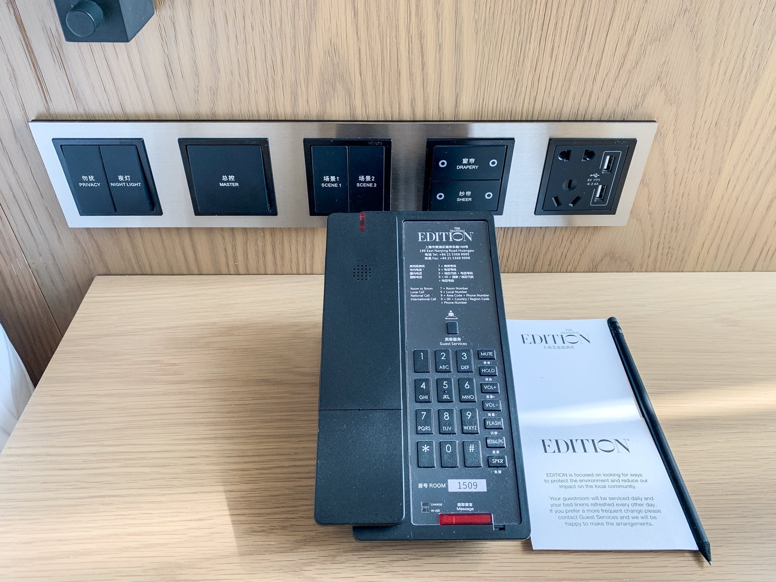 I appreciated that my room had a plethora of charging options for all my devices. I'd brought my iPhone, AirPods, laptop, GoPro, camera stabilizer and a portable battery pack. Of course, all of these devices needed to be charged, and between the nightstands and the desk I had no problem charging them all up at once — props to the Shanghai Edition from this millennial!