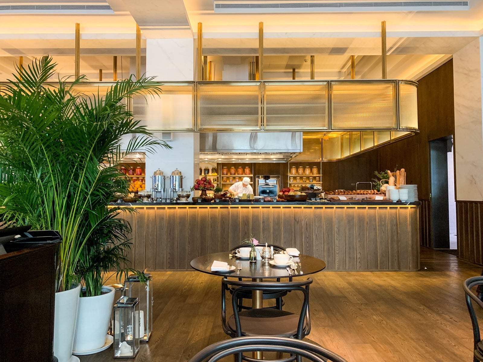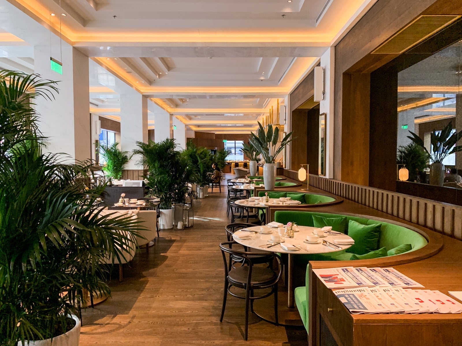 As I mentioned above, my room rate included breakfast, which I had each morning at Shanghai Tavern, a kind of reprise of Berners Tavern at the London Edition. It evoked 1920s Shanghai glamour with its abundant potted plants, bright green booths and dark woods.