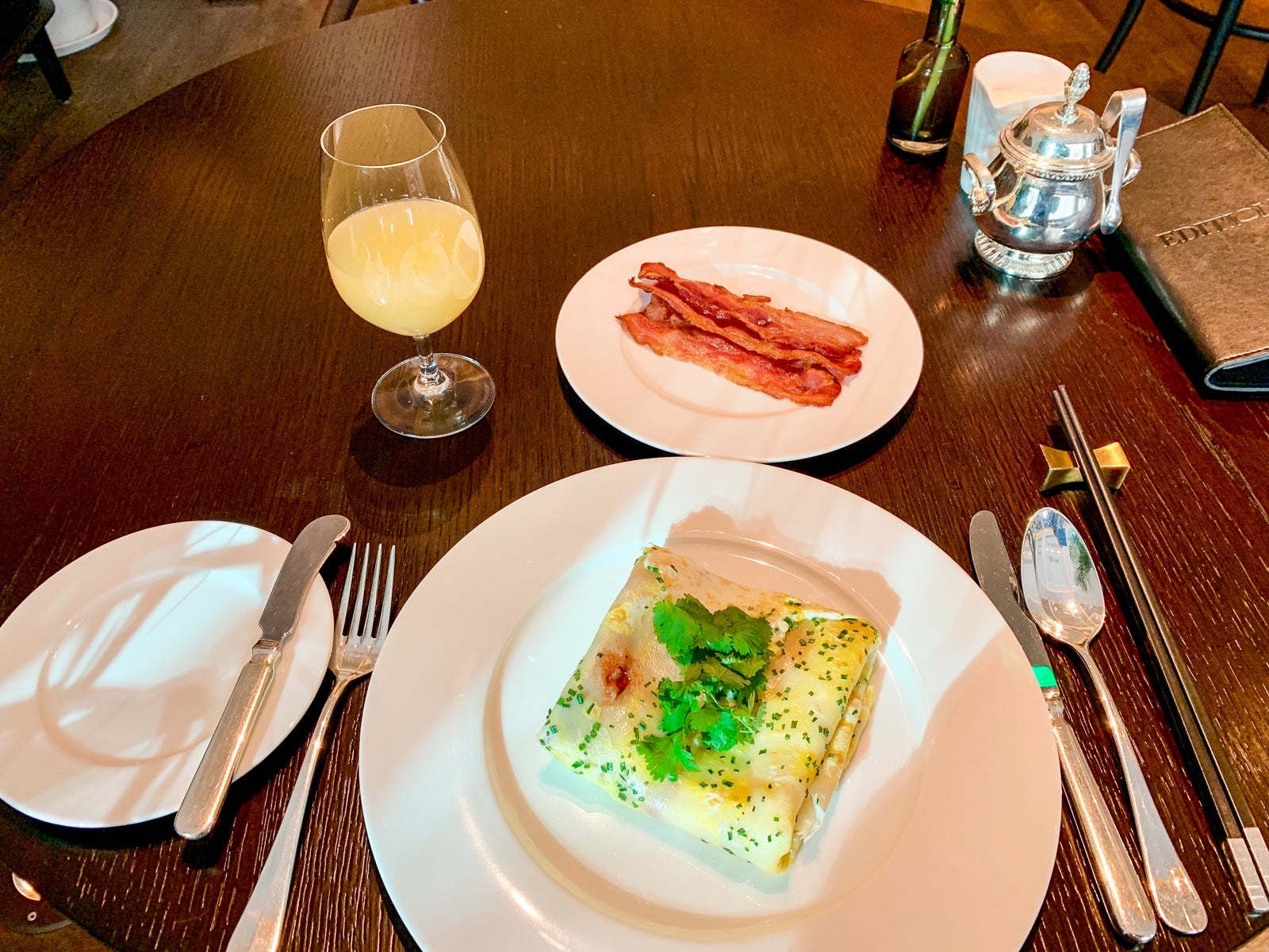 The menu also nodded to the time when the British were a colonial power in China with such items as the full English breakfast. There were plenty of Chinese options, too, including congee and noodles and fried rice. The jian bing (like a savory Shanghainese crepe with chives and chili sauce) stood out. It was so delicious that I had one on each of the three mornings that I ate breakfast at the hotel.