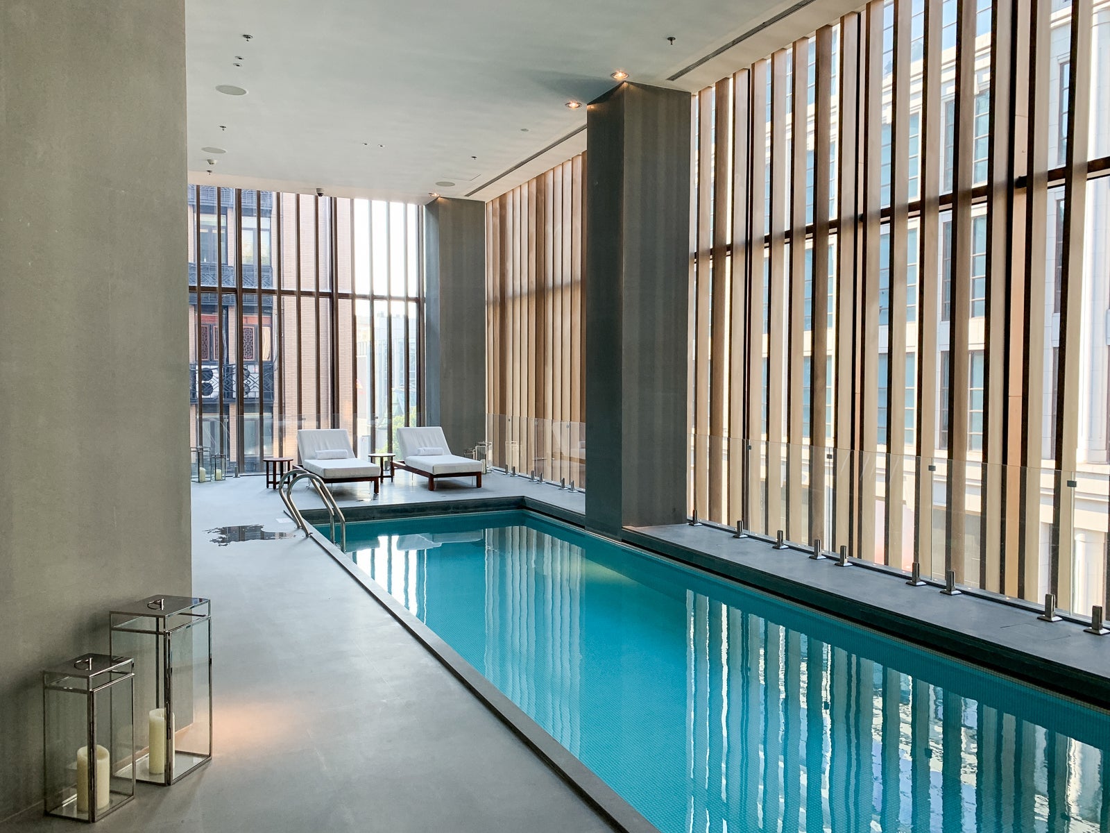 Same for the pool, which was also small but still a relaxing place to hang out, with its cushioned loungers and soothing music. I camped out by the pool for a couple of hours to get some work done, as it was much quieter than the hotel's other public spaces.