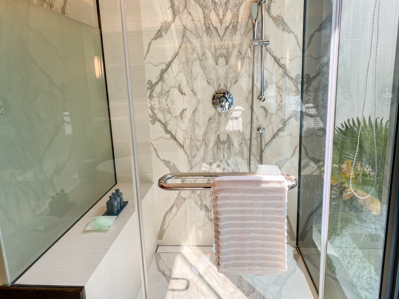 The indoor shower was beautiful to look at, but it unfortunately flooded the bathroom every time I used it, and although I put a towel down to catch the water, it was sopping wet by the time I was done.