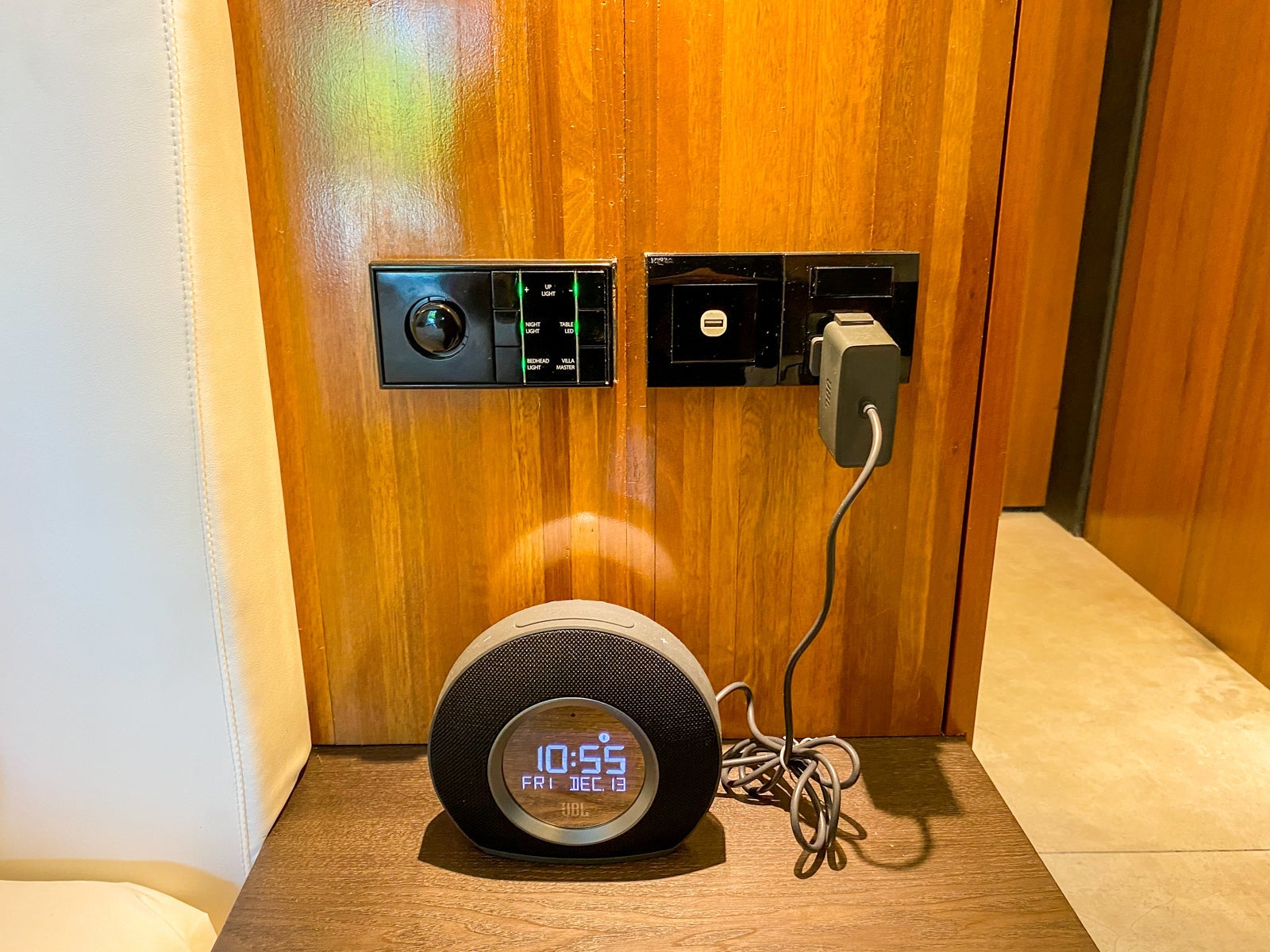 The other night table had a bluetooth-speaker, some outlets and light switches. There was a USB plug, which was great to have for charging any one of many devices that I had with me.