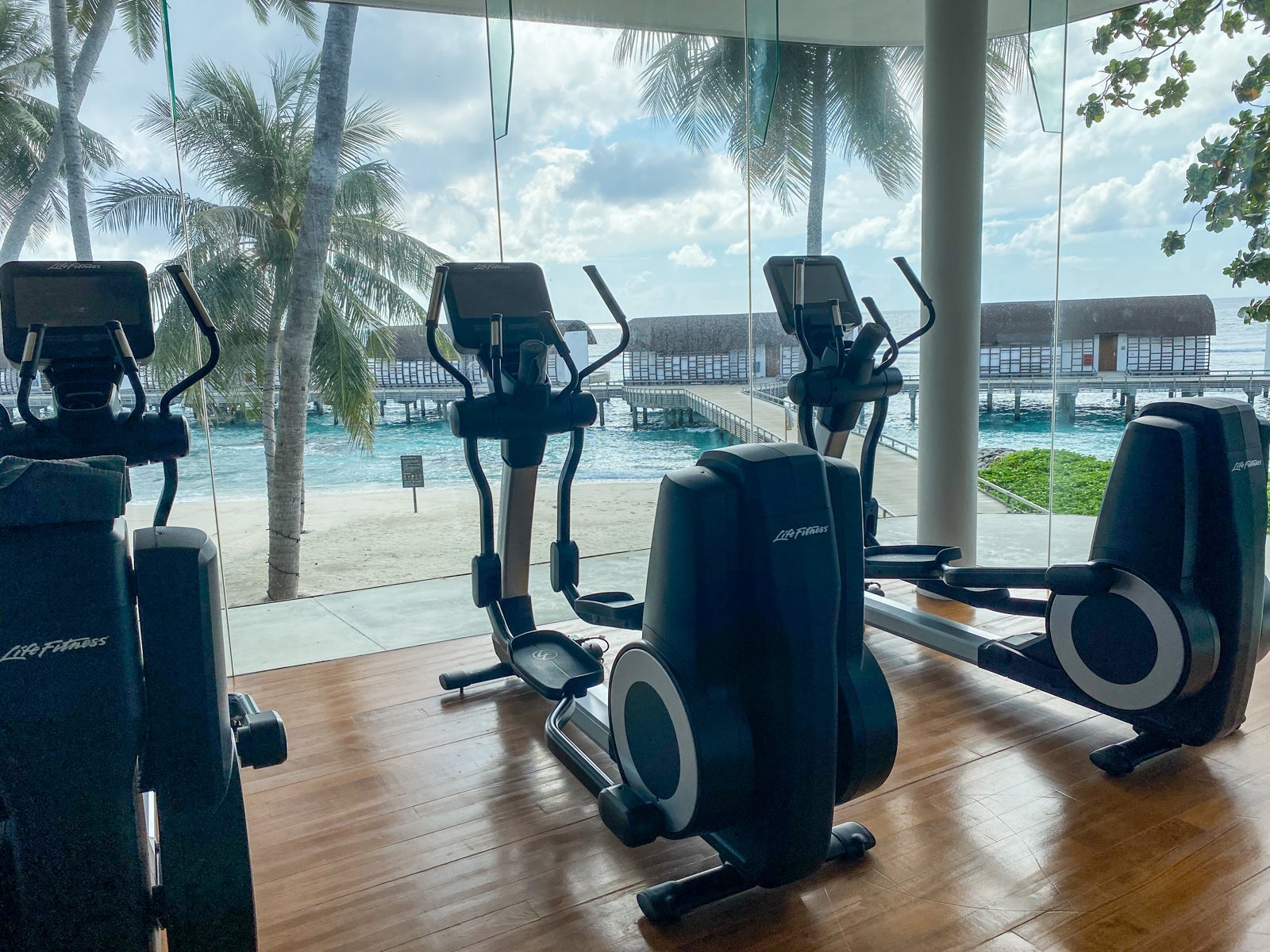 The gym also overlooks some of the beautiful overwater villas, so you're looking at a place where you really have no excuse not to workout.