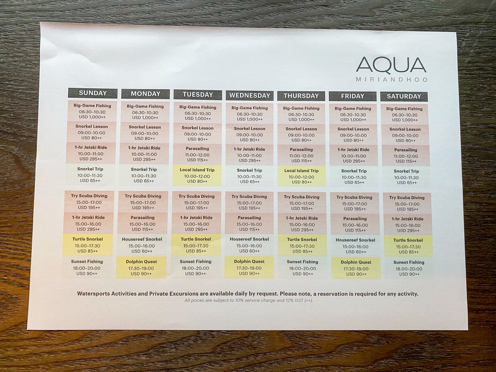 Shaffaf explained some of the benefits of my stay, including a complimentary photo session, snorkeling gear, and even a kayak trip. I was also excited about the 10% discount on food and beverages, although he explained that the benefit didn't extend to breakfast.