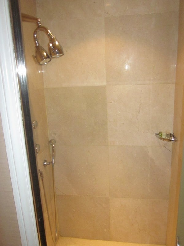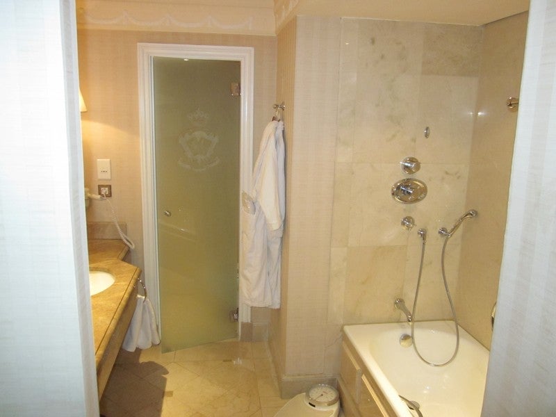 The bathroom is attractive, with a strong heavenly shower, tub and a toilet area with bidet.