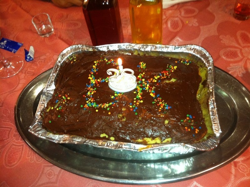 However, before I knew it there was Spanish singing and yet another dessert was being brought out- a classic Duncan Hines "American" birthday cake my friend made for me. Apparently doing super-American things like this are really fun for ex-pats! The cake was actually good, but what I most enjoyed watching the restaurant staff marvel at it, since they had never seen such a creation.