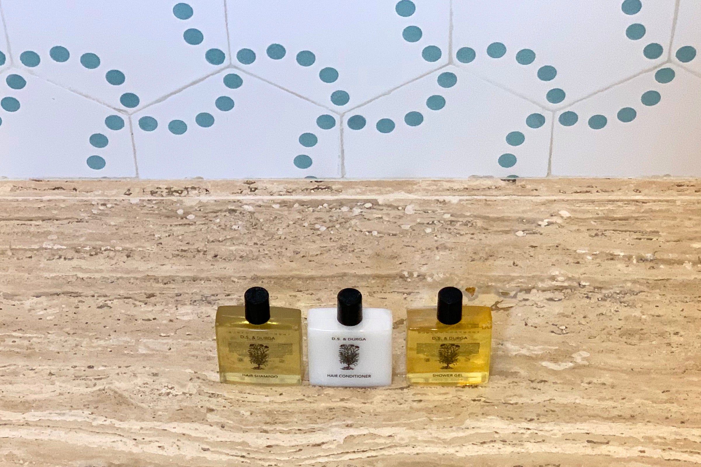 Amenities were from Brooklyn-based D.S. & Durga, and included soap, shampoo, conditioner and body lotion.