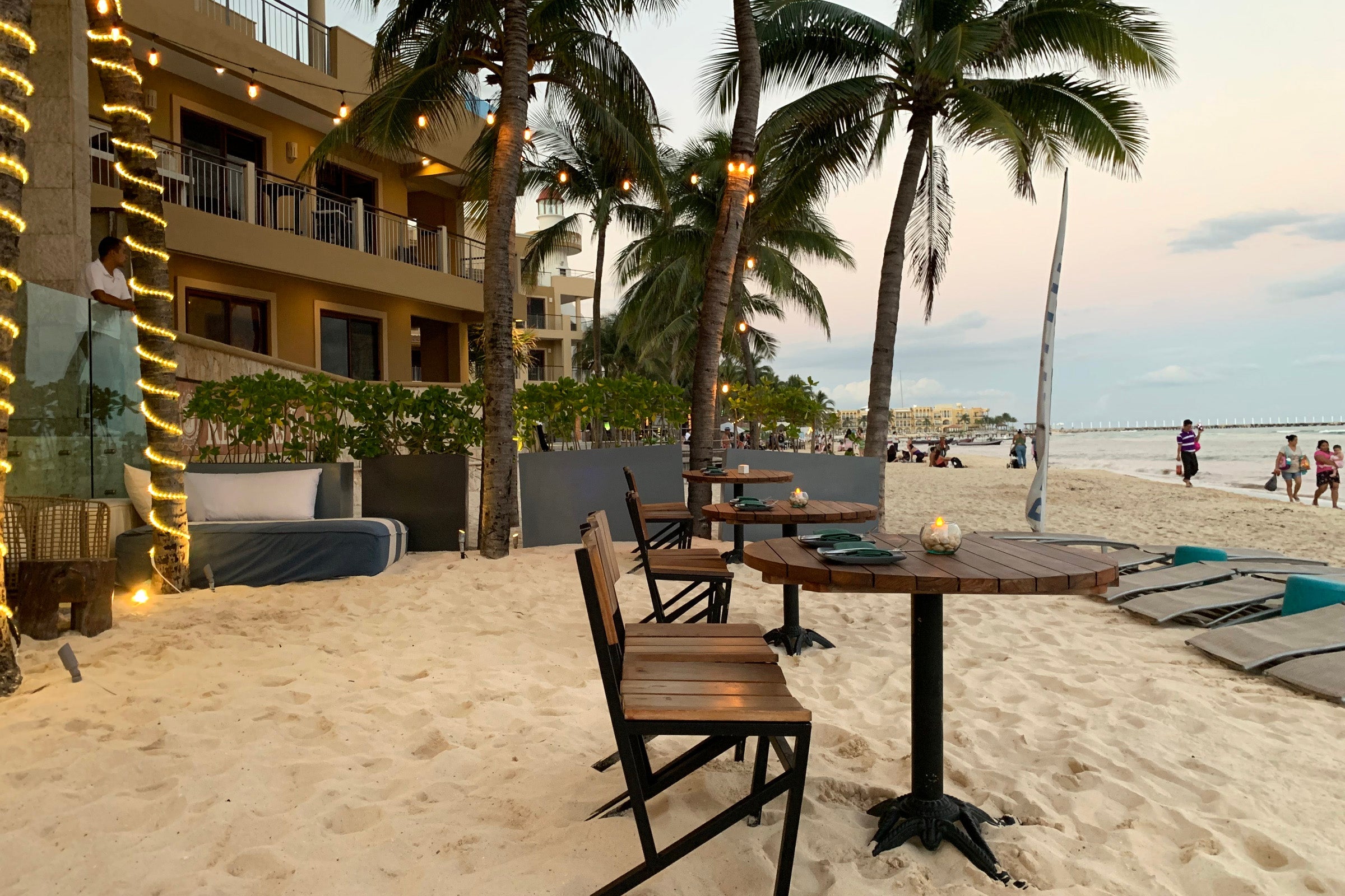 The beaches are public in Playa del Carmen, so the hotel set up daybeds and chairs a bit farther back from the water.